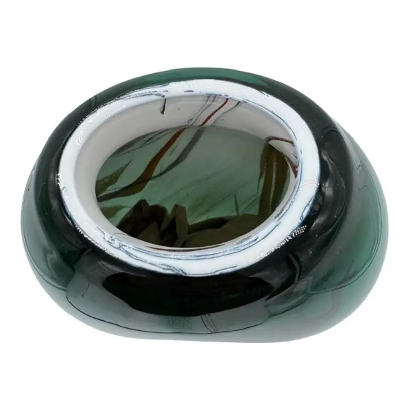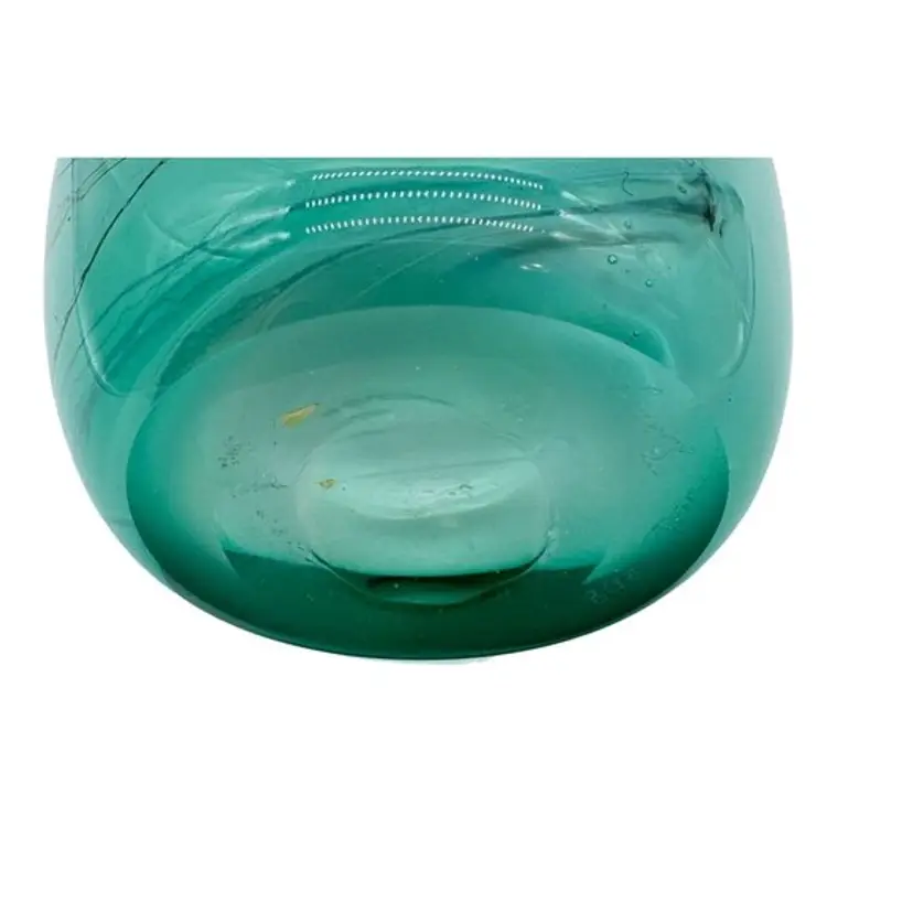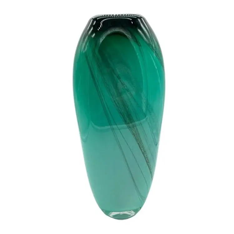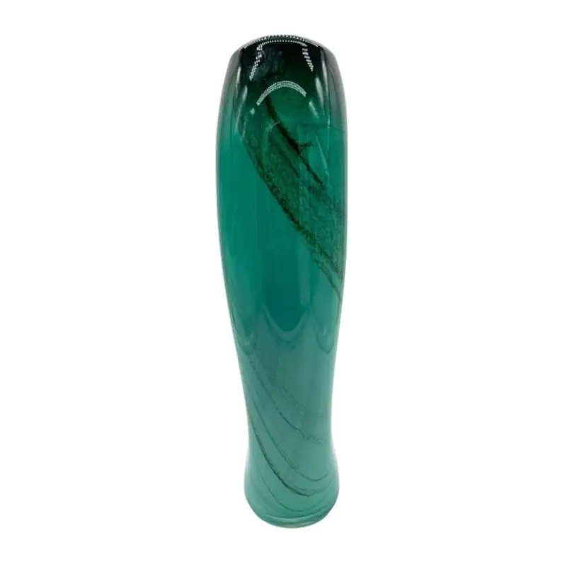 This exquisite Dan Bergsma Art Glass vase, with its unique sea green swirls with cased design, is hand-blown and polished to perfection. Its beautiful sea green color with swirls makes it a standout piece for any space.