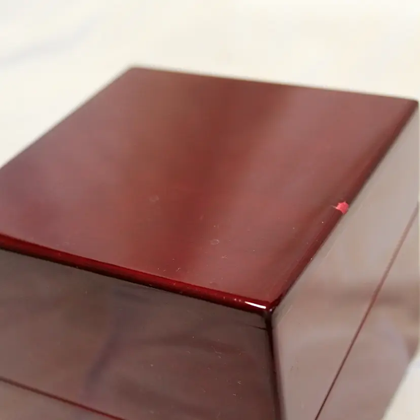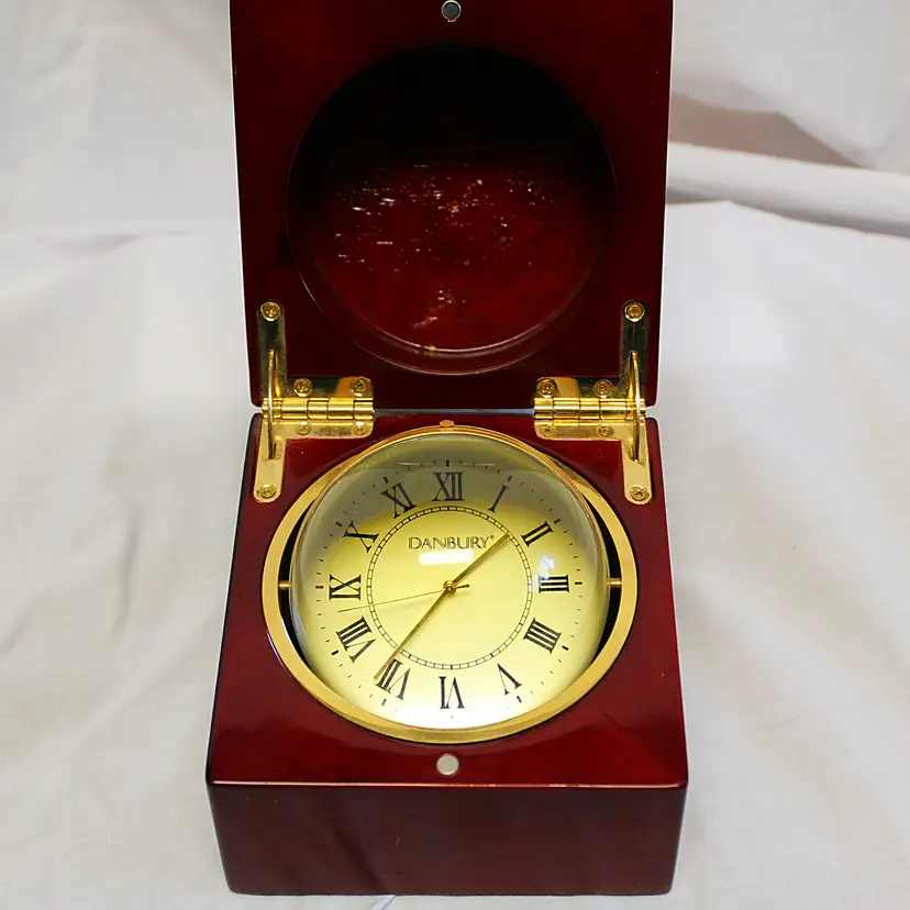 Some wear, but the clock is functioning. Priced right for your personal touch to be added. Closed 4" tall by 4.5" deep.