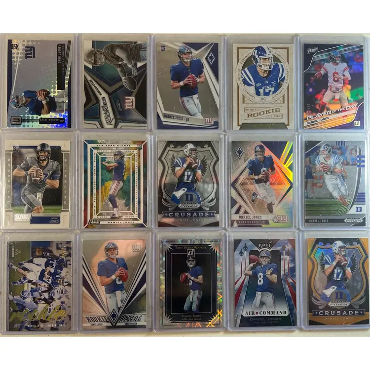 15 Daniel Jones cards, mostly rookies. Top right is /99. Bottom right is /149. Shipped BMWT. Free shipping.