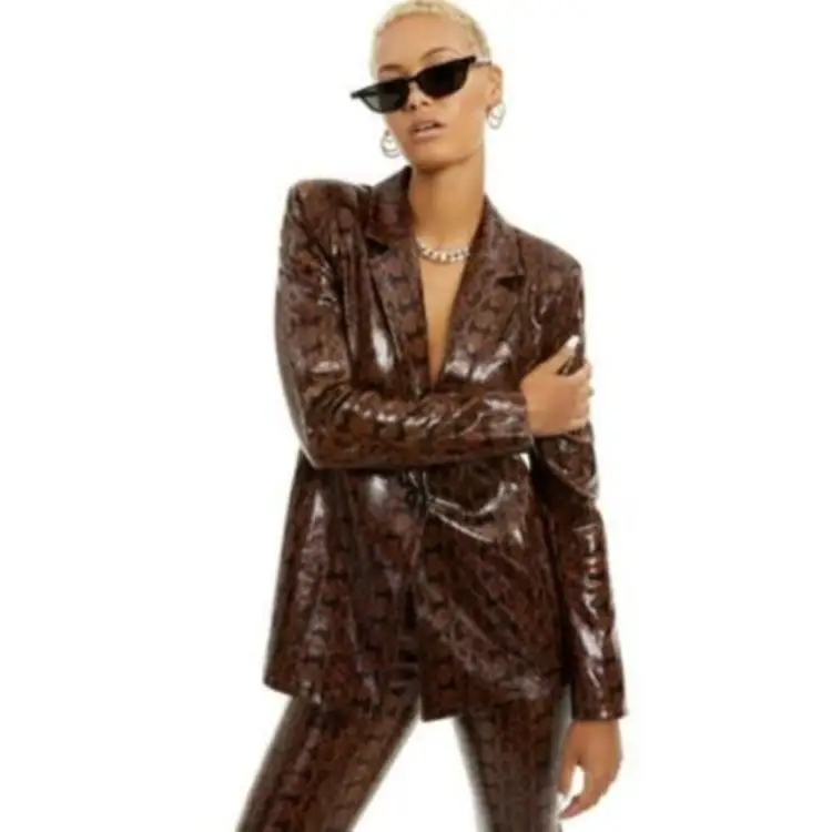Danielle Bernstein Faux-Snakeskin Blazer Brown Women's Small New With tags Macy's collab Polyester, Spandex, Polyyurethane 18 in flat across bust 26 in length