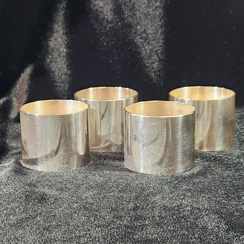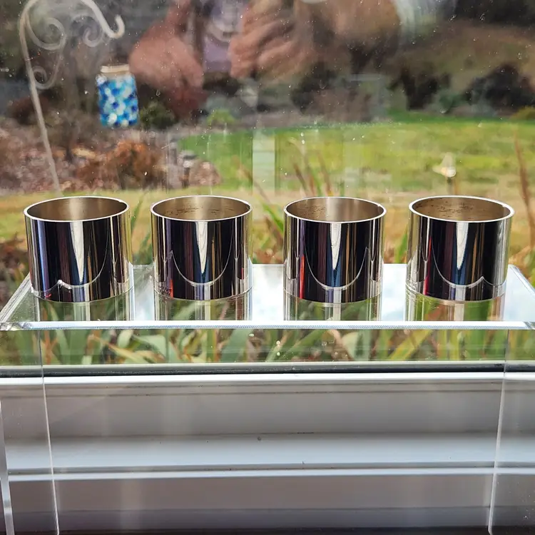 Beautiful minimalist Scandinavian Modern silver plate napkin rings marked Denmark. This is for a set of 4. Goes with any style, perfect for holiday dinners or anytime you want to feel special.