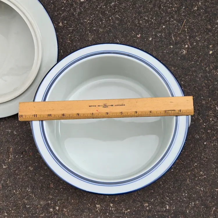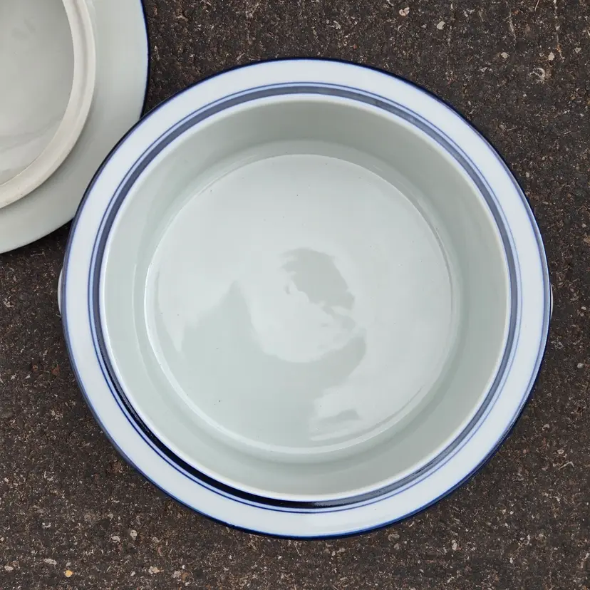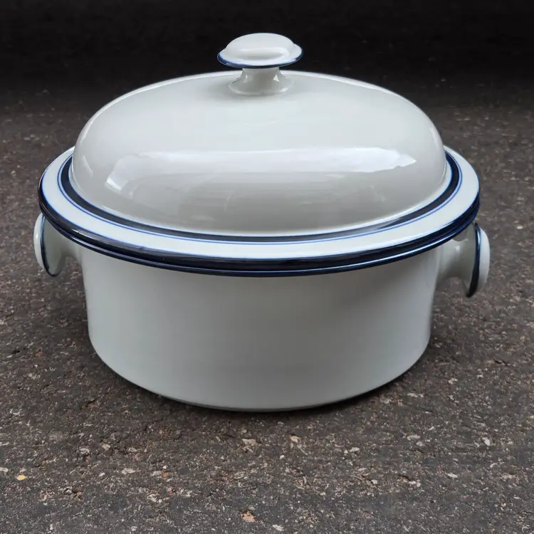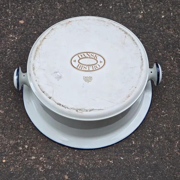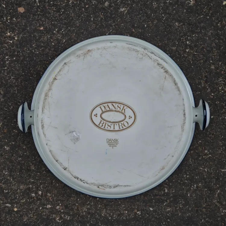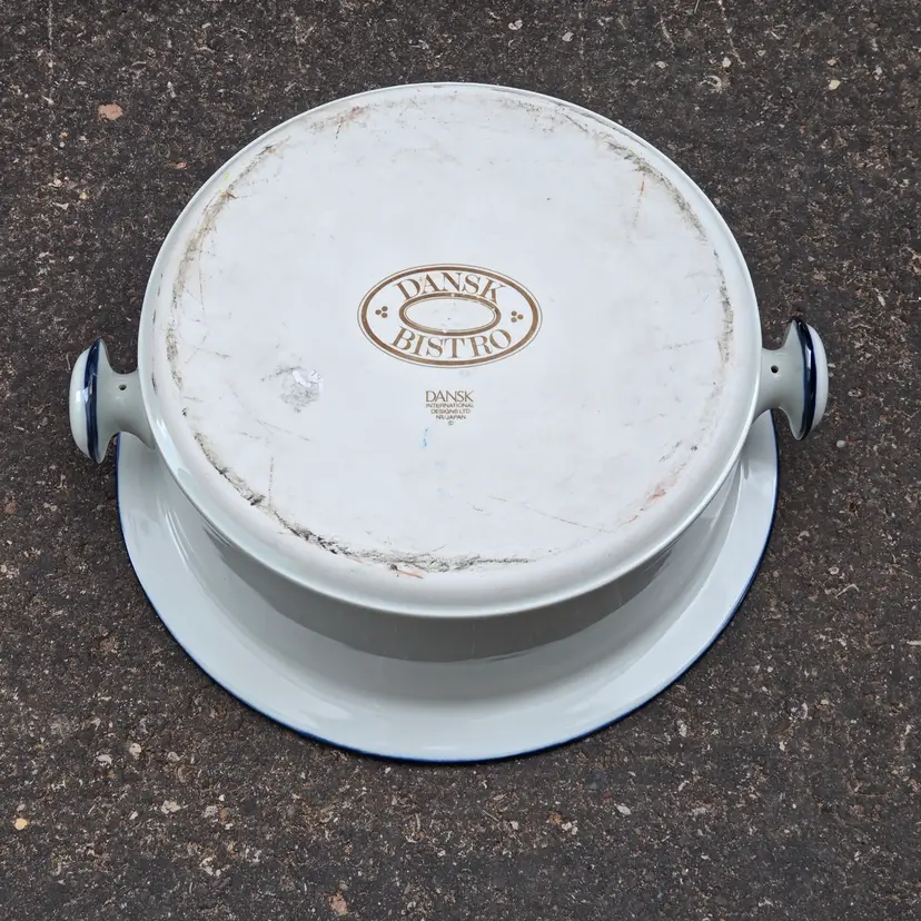 Dansk Bistro Christianshavn Blue Covered Casserole 3.5 qt & 11" at Widest between handles Vintage. Used condition with dirt on the bottom, sticker residue, dust , water stains. Really no extensive use that I can see. Please view all the photos and please ask any questions prior to purchase when possible.