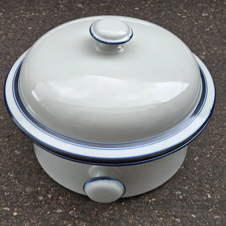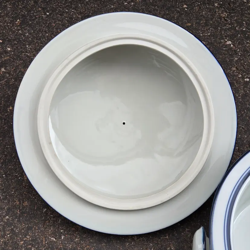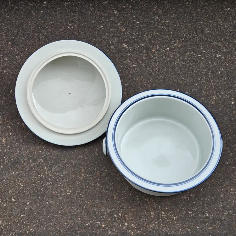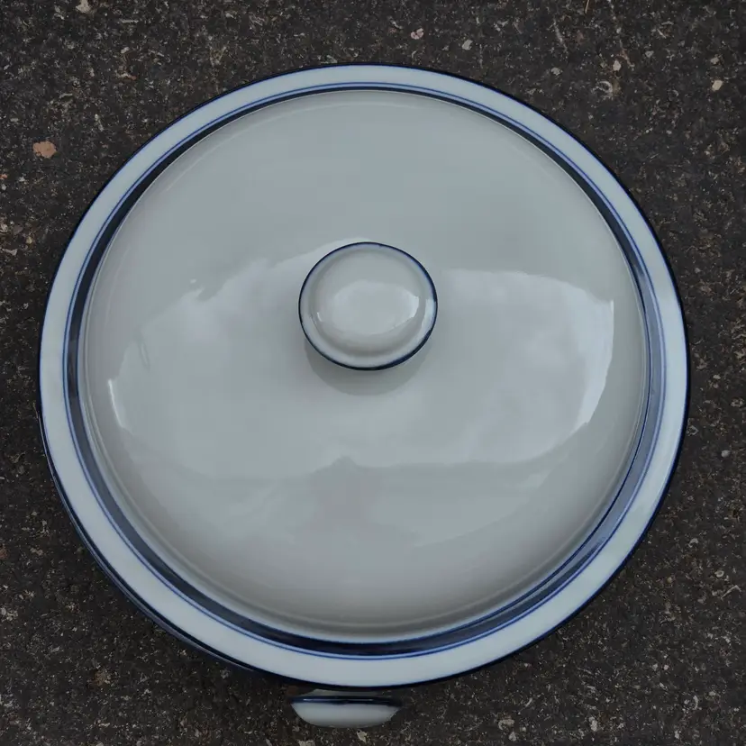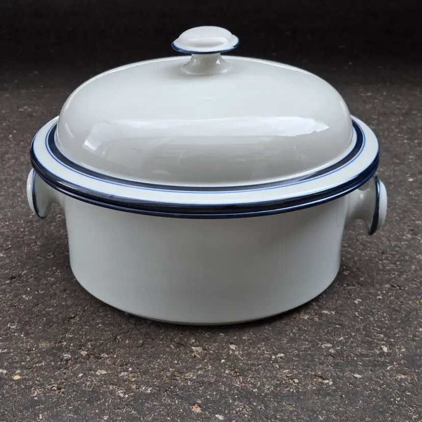 Dansk Bistro Christianshavn Blue Covered Casserole 3.5 qt & 11" at Widest between handles Vintage. Used condition with dirt on the bottom, sticker residue, dust , water stains. Really no extensive use that I can see. Please view all the photos and please ask any questions prior to purchase when possible.