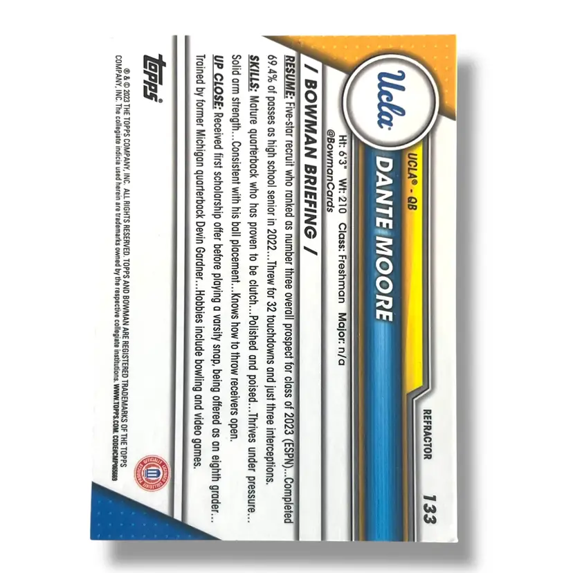 Here We Have a Dante Moore 2023 Bowman University Chrome 1st Bowman Refractor #133