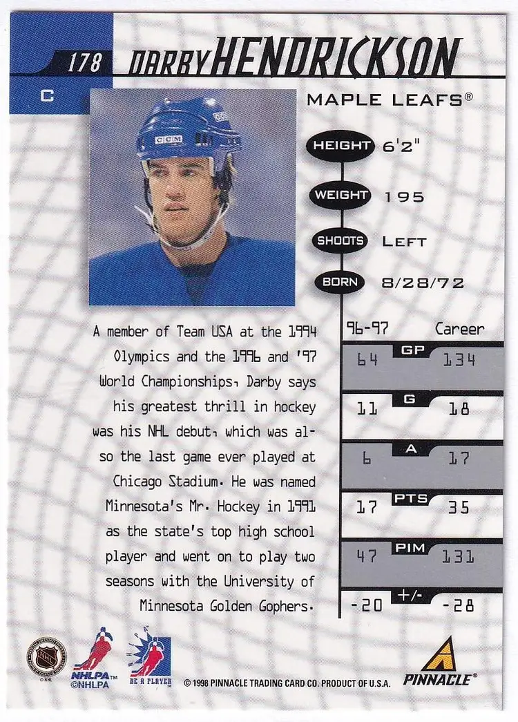 1997-98 Be A Player Autographs #178 Darby Hendrickson Toronto Maple Leafs