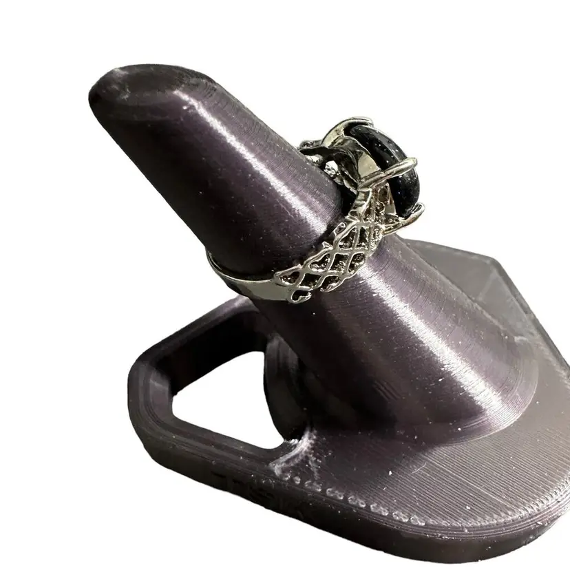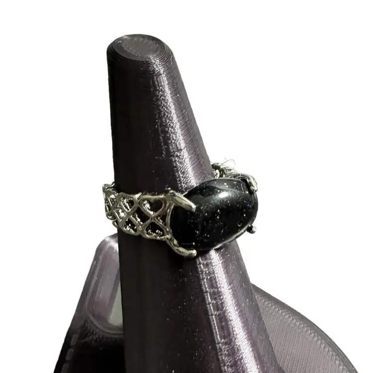 Dark Blue Goldstone Semi-Precious Silver Plated Ring New 8.5 Dark navy almost black stone with blue specks (the final photos is an example that better shows the color) Thinker criss-cross band horizontal rounded rectangle