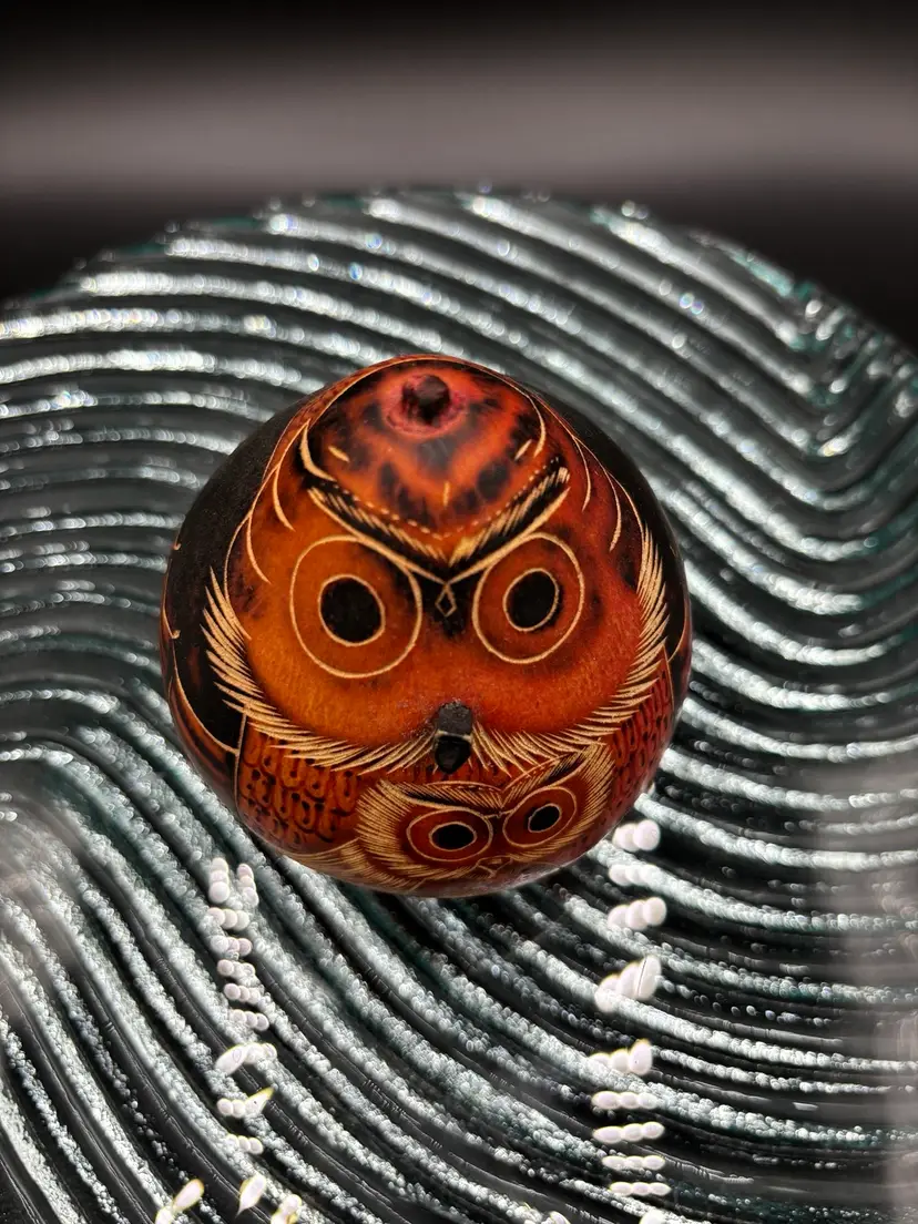 Super sweet mama owl with baby. Amazing carved detail. In beautiful condition. Approximately 3 1/2”H, 3 1/2”W
