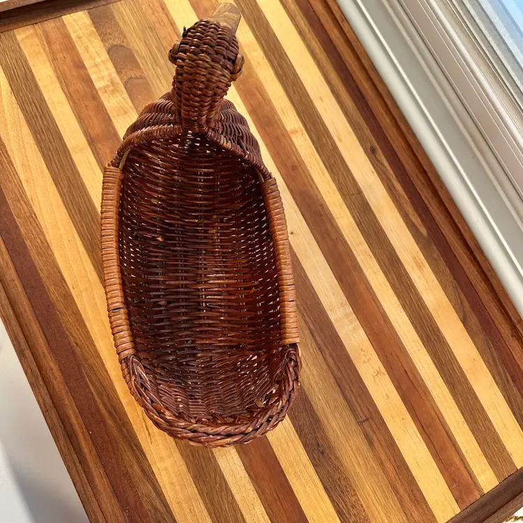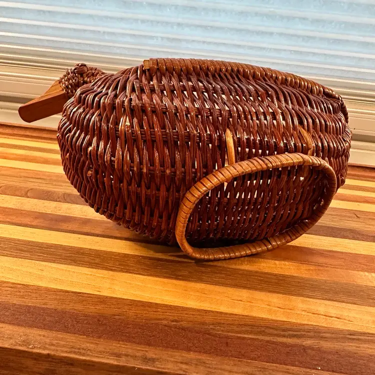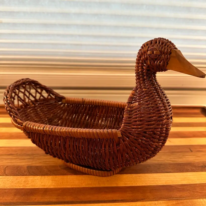 Darling Vintage Wicker Rattan Duck Goose Basket Woven Tail Feather