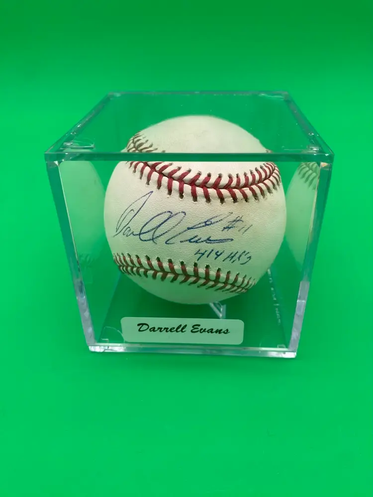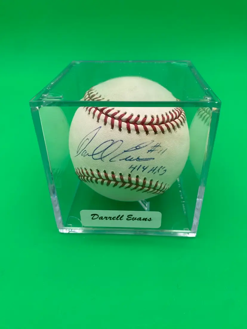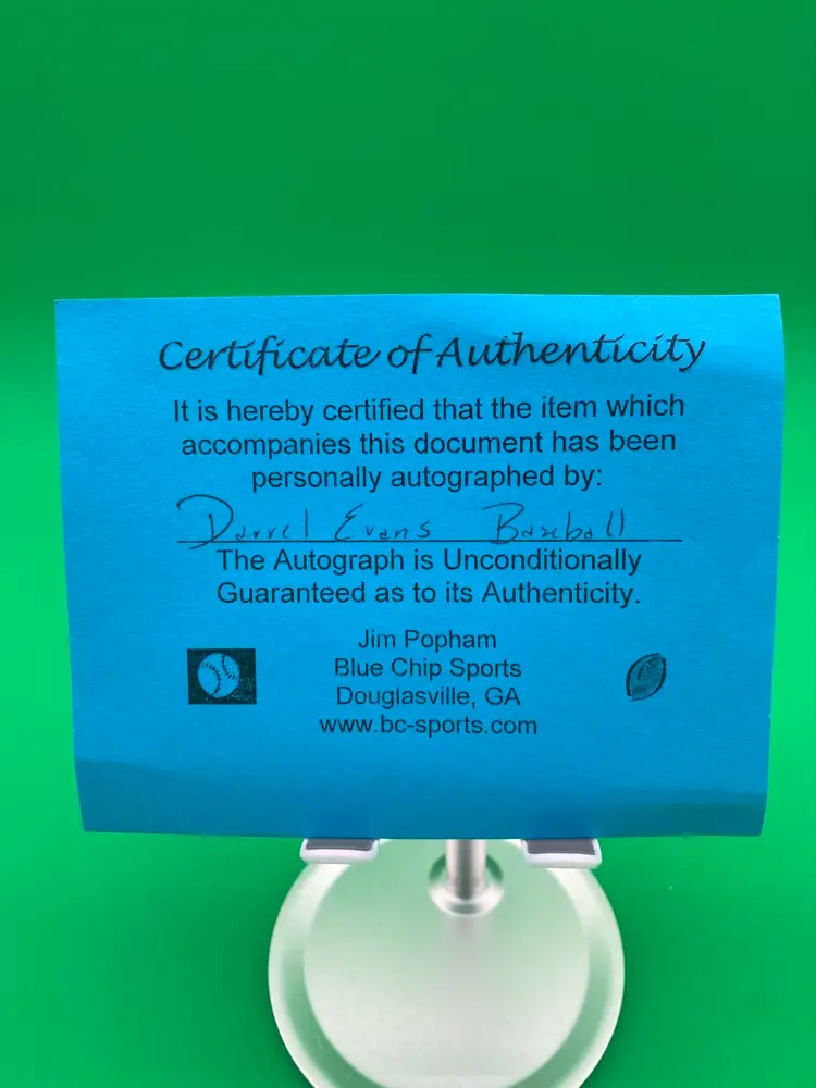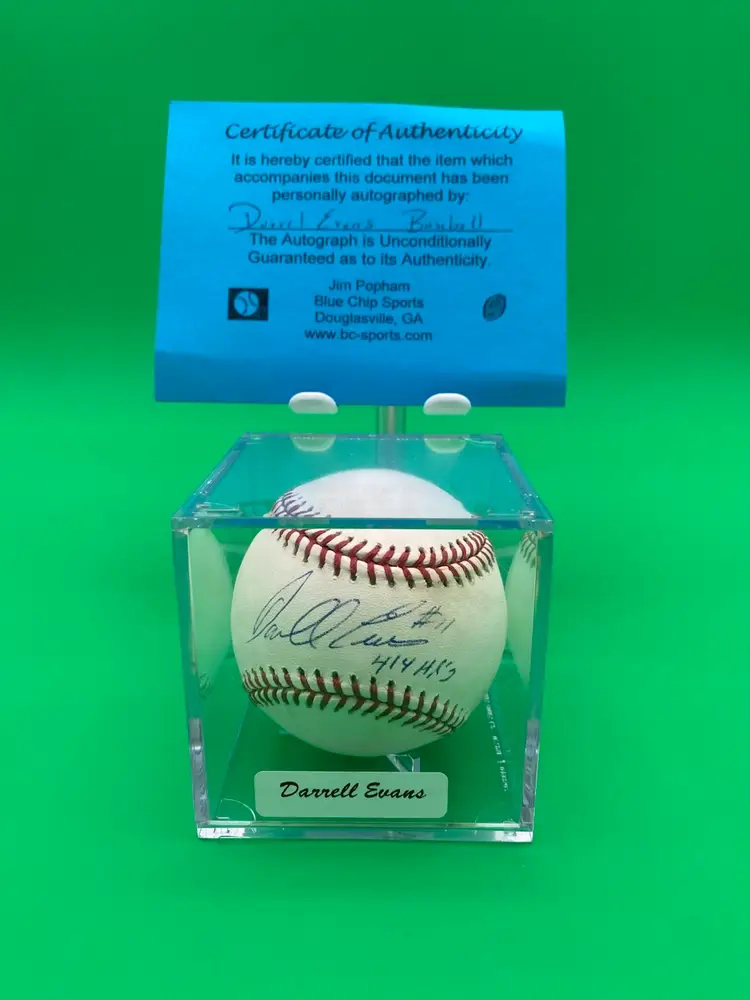 You are purchasing one Darrell Evans '#11 414 HR's' Signed Rawlings Official Major League Baseball. This ball includes on hard plastic display case and one certificate of authenticity by Blue Chip Sports. This Baseball is in overall great condition. See images for a closer look at each angle. No chips or cracks in the case. No rips on the certificate.