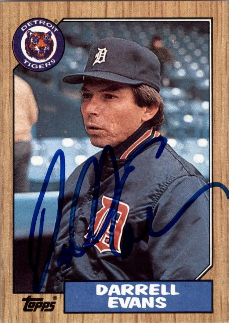Authentic Topps baseball card featuring Darrell Evans of the Detroit Tigers, signed boldly in blue Sharpie. A great addition for Tigers fans and autograph collectors. Your purchase supports Signatures For Soldiers in helping homeless and disabled veterans.