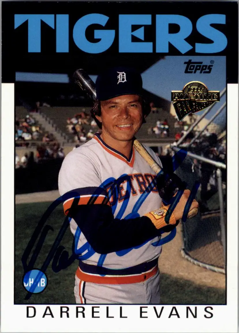 Authentic Topps baseball card featuring Darrell Evans of the Detroit Tigers, signed boldly in blue Sharpie. A great addition for Tigers fans and autograph collectors. Your purchase supports Signatures For Soldiers in helping homeless and disabled veterans.