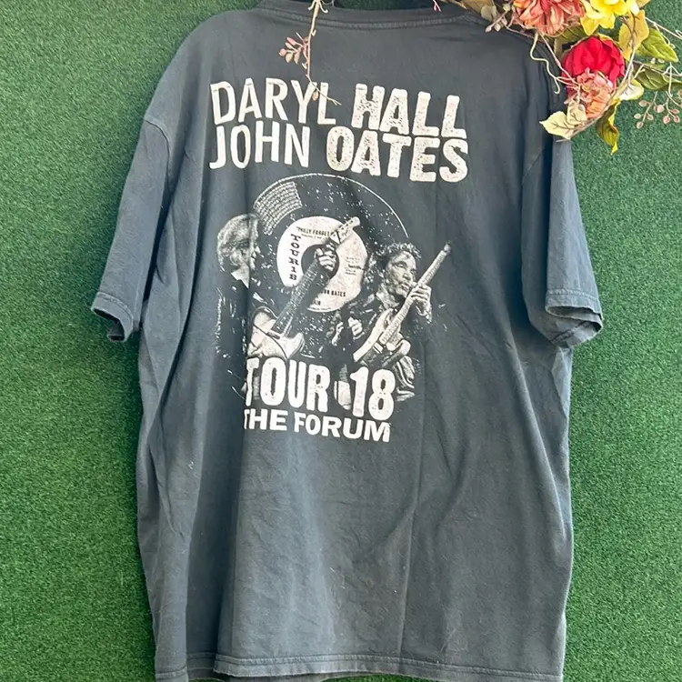Darrell Hall And John Oates “Tour 18, The Forum”, Graphic T-Shirt Design On Both Sides, Black Tag/label 707 by Fantasy Activewear Inc Extra large Pit to pit 23 inches length 28 1/2 inches