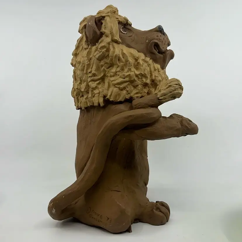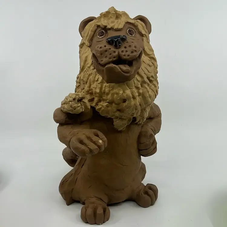 Dave Grossman 1973 Cartoonish Clay Large Lion Sculpture Signed 10.5”