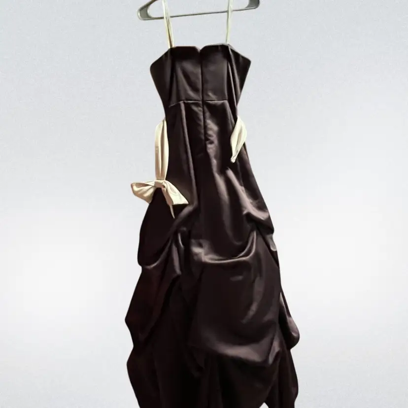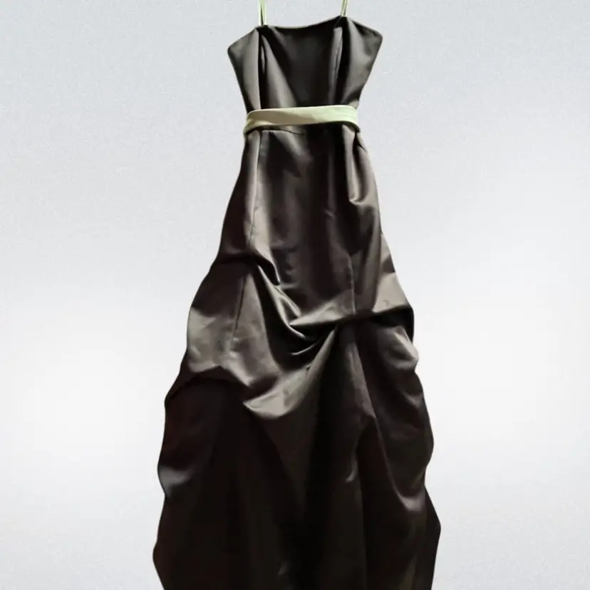 David’s Bridal - Formal / Prom Dress - Chocolate brown w/ champagne sash - size 8 - worn once