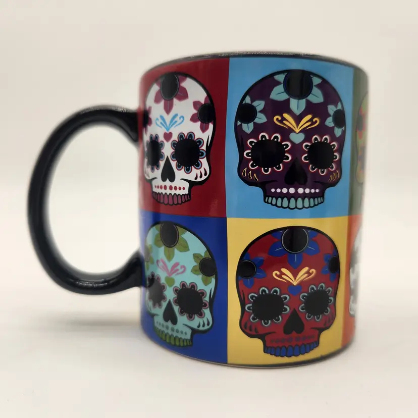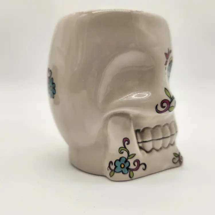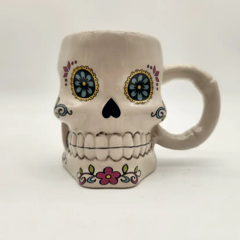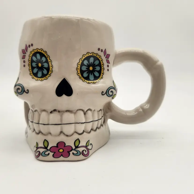 Keywords: Day of the Dead, Dia de los Muertos, Skull mug, Coffee mug, Ceramic mug, Sugar skull, Novelty mug, Halloween, Decorative mug, Westland, Collectible mug, Kitchen decor, Drinkware, Gift idea