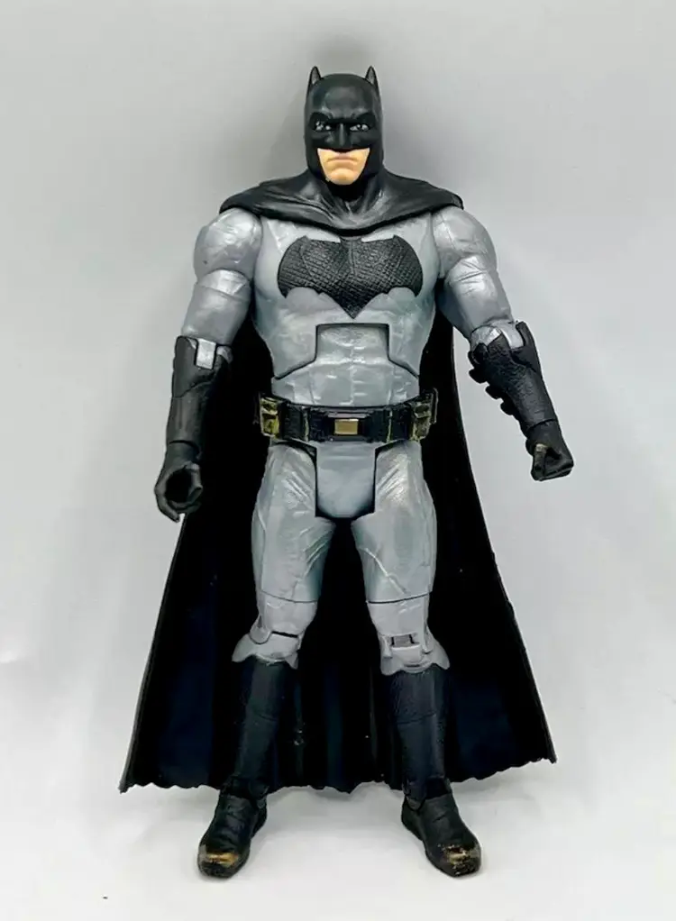 This 6-inch action figure from Mattel's DC Comics Multiverse series features Batman from the movie "Batman v Superman: Dawn of Justice." Made of plastic, it is multicolored and includes detailed articulation. Suitable for display or play, it is ideal for fans of the DC Comics franchise. The item is in good condition but has some flaws.