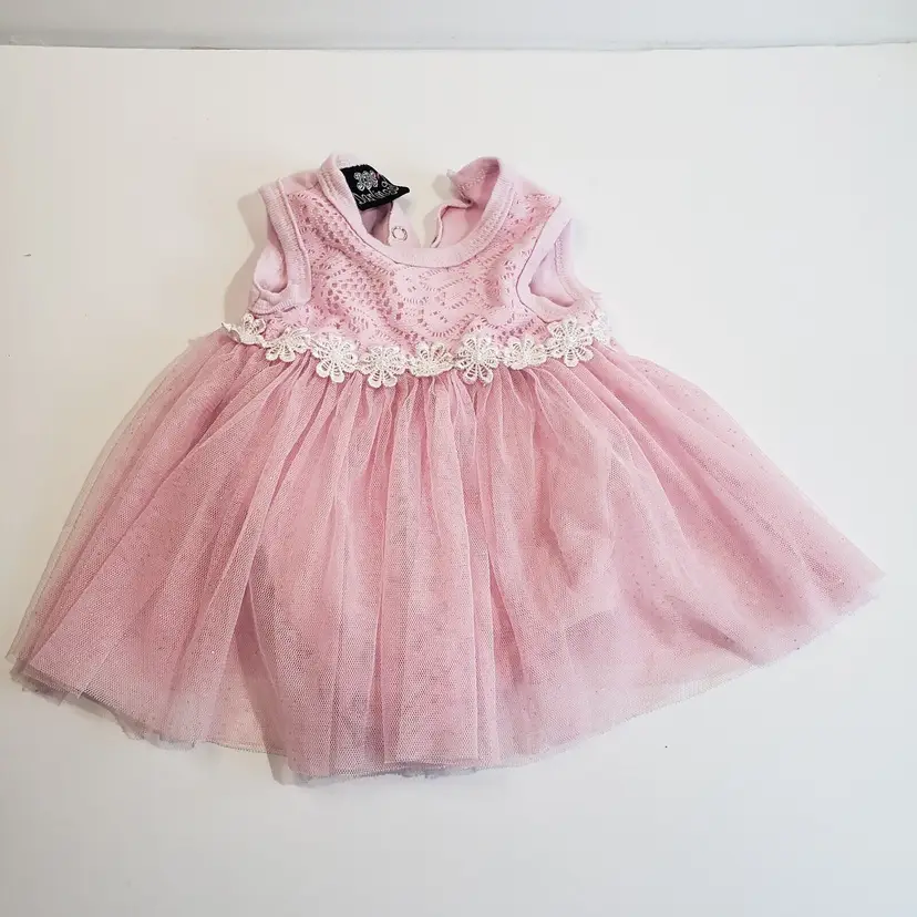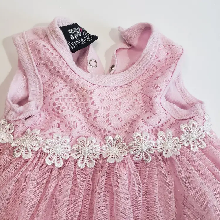 – Brand: DDG Darlings – Pattern: ruffles & daisies – Department: Girls – Type: One-Piece – Sleeve Length: Sleeveless – Number of Pieces: 1 Piece – Size: 0-3 Months – Color: Pink – Style: Onesie – Set Includes: Dress – Season: Spring, Summer – Accents: Ruffle
