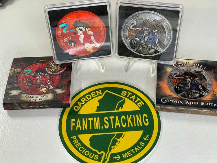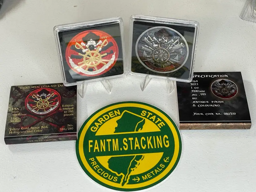 2 limited edition 1oz Silver Dead Men Tell No Lies set. 2 colorized coins with matching serial numbers. Limited to 250 pieces.