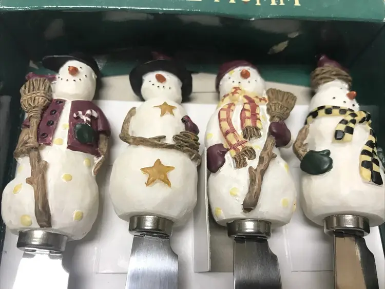 Add a festive touch to your holiday gatherings with the Debbie Mumm Christmas Snowmen 4-piece Charcuterie Cheese Butter Spreader Set. Each porcelain head and stainless steel blade combo is adorned with a charming snowman handle pattern, bringing whimsy to your table setting. The set includes four cheese knives & spreaders, perfect for effortlessly serving cheese and butter during your Christmas celebrations. Crafted with care, the spreaders feature a ceramic handle material that ensures a comfortable grip, making them both functional and decorative. The white color scheme, accented with festive snowmen, complements any holiday decor, making this set a delightful addition to your Christmas occasions.