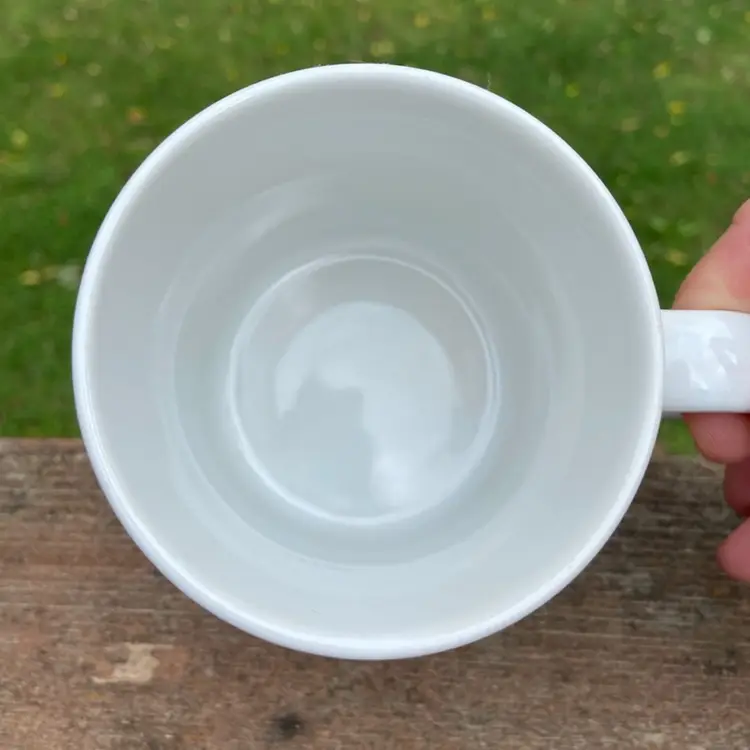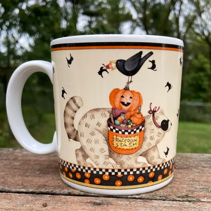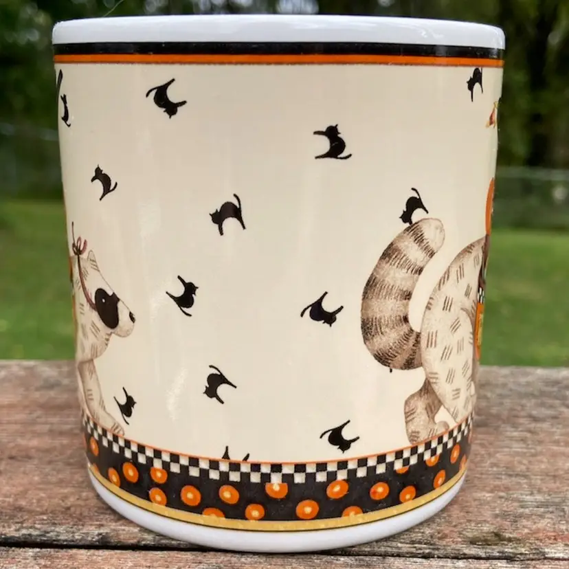 Approx: 3 5/8”h x 4.5”w including handle, 10 ounces. No chips or cracks. See images as part of description.