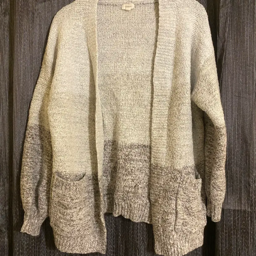 You are purchasing one Women's Size XS 3-Tone Gray Acrylic Open Cardigan by Debut. This Cardigan has two exterior pockets. This Cardigan is in excellent condition with no rips, holes or stains.