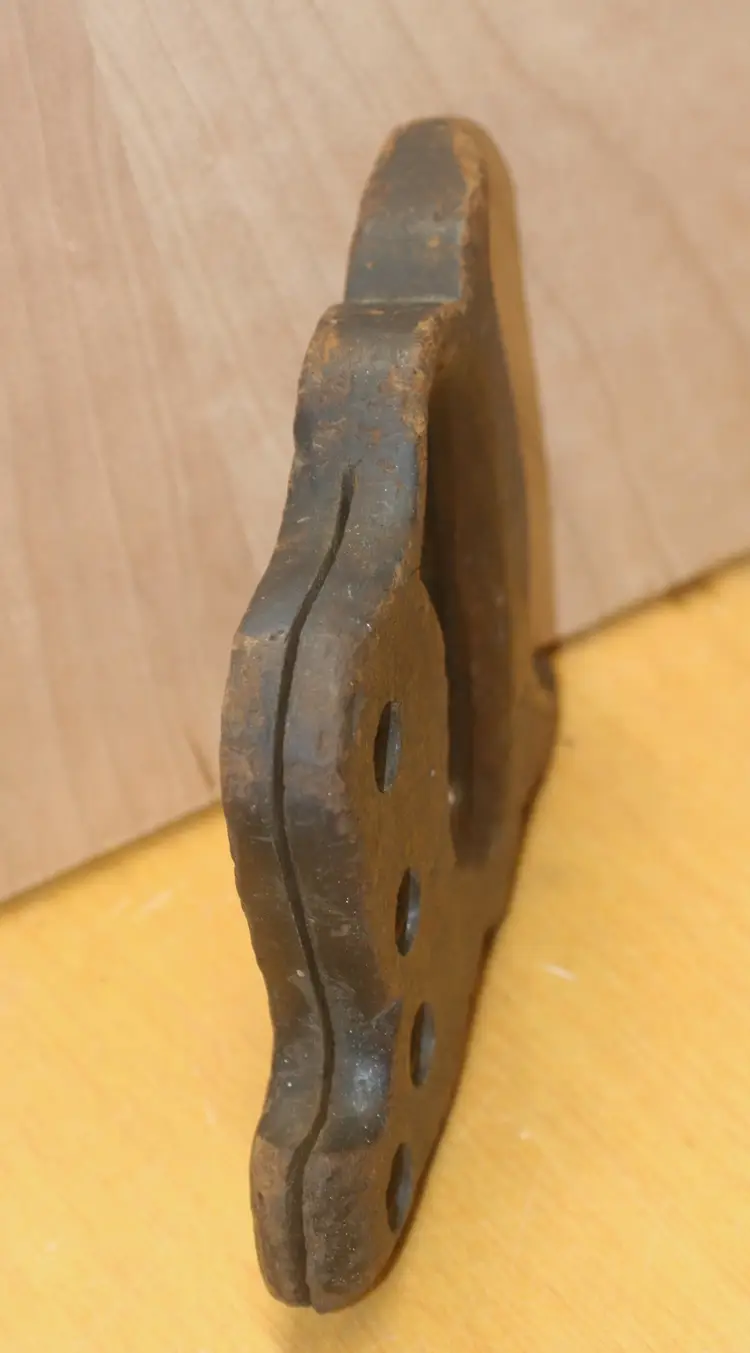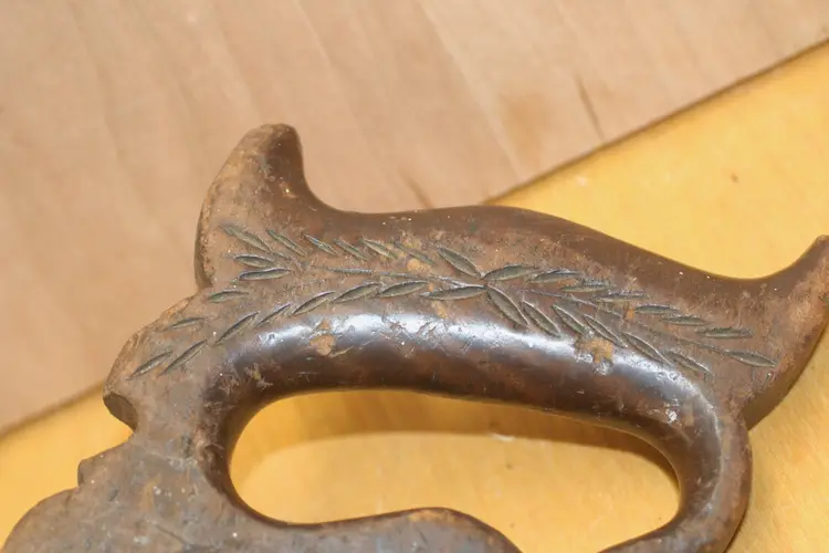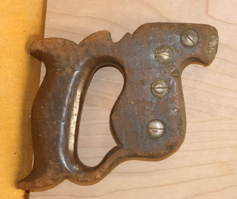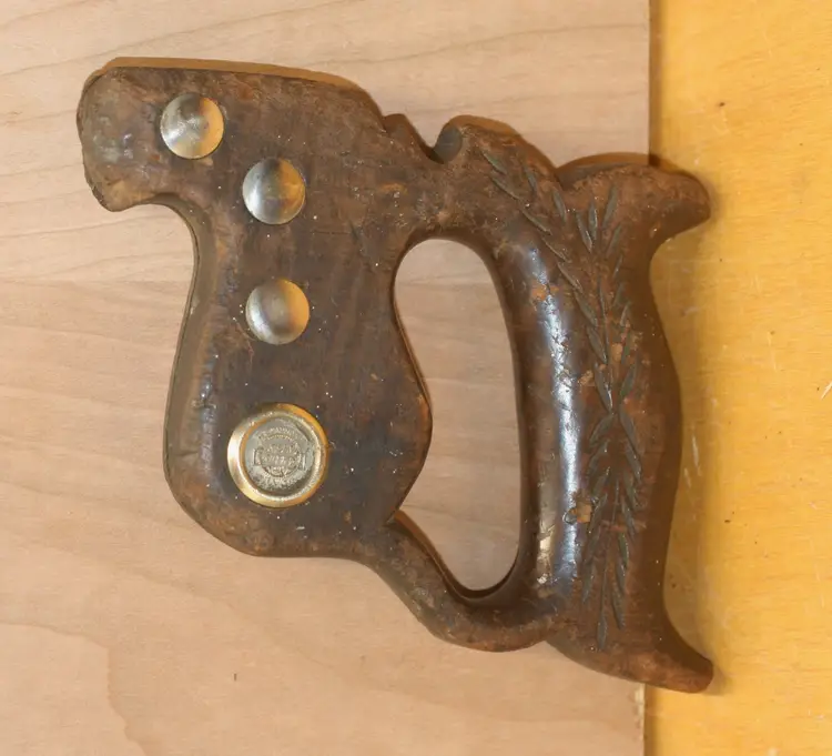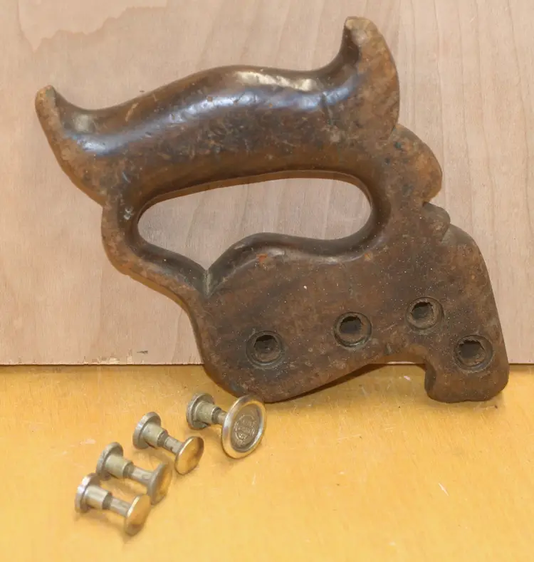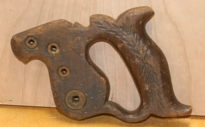 On offer here is a Decorated Vintage E. C. SIMMONS KEEN KUTTER Saw Handle/Tote including original hardware screws/nuts & maker's medallion. General wear - a little rough on one horn but should smooth out. Please see photos. Offered to USA Buyers only. Shipping to be by USPS Ground Advantage. Buyer pays shipping. Multiple items purchased on the same day will be combined for savings on shipping whenever possible. Any overage collected for shipping will then be refunded. Please see photos.