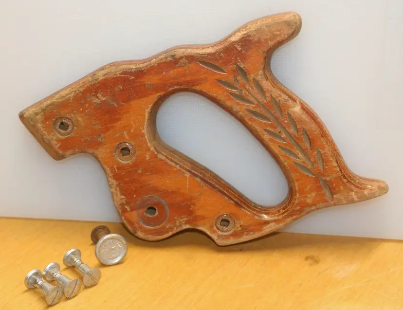 On offer here is a Decorated Vintage NICHOLSON Saw Handle/Tote including original hardware screws/nuts & maker's button.