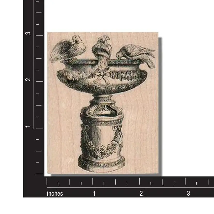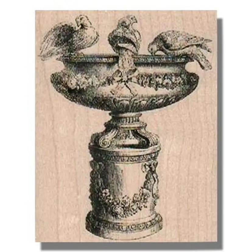 Victorian Bird Bath with Birds Rubber Stamp Size: 3 x 2-1/2 Red Rubber • Handmade • Great for junk journals, mixed media projects, collage, card making and tags.