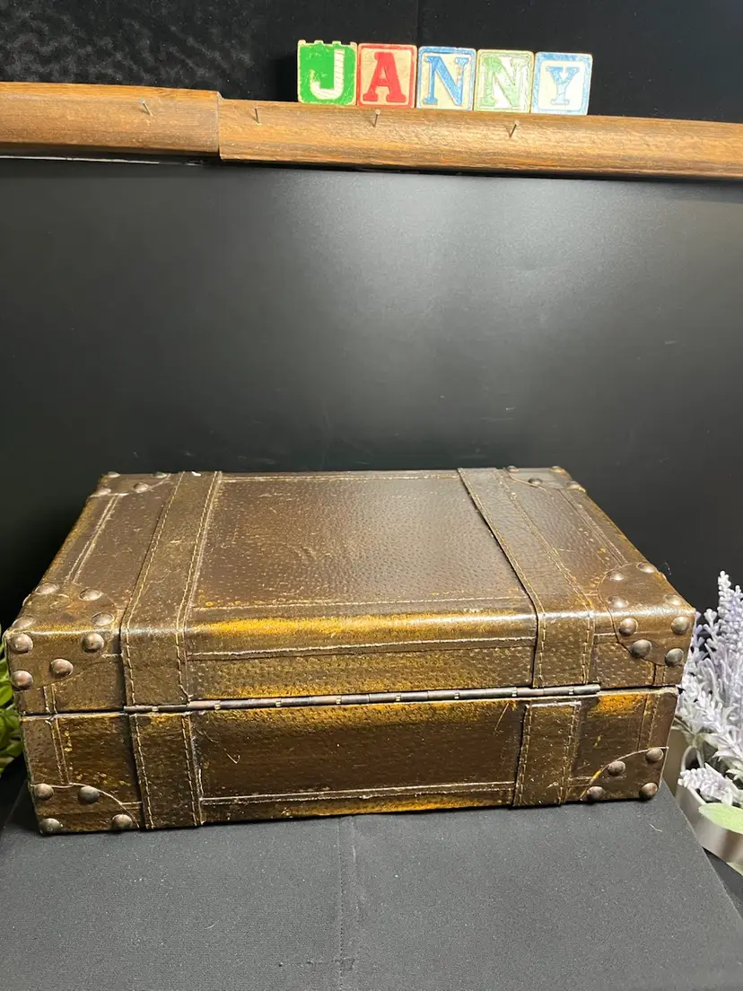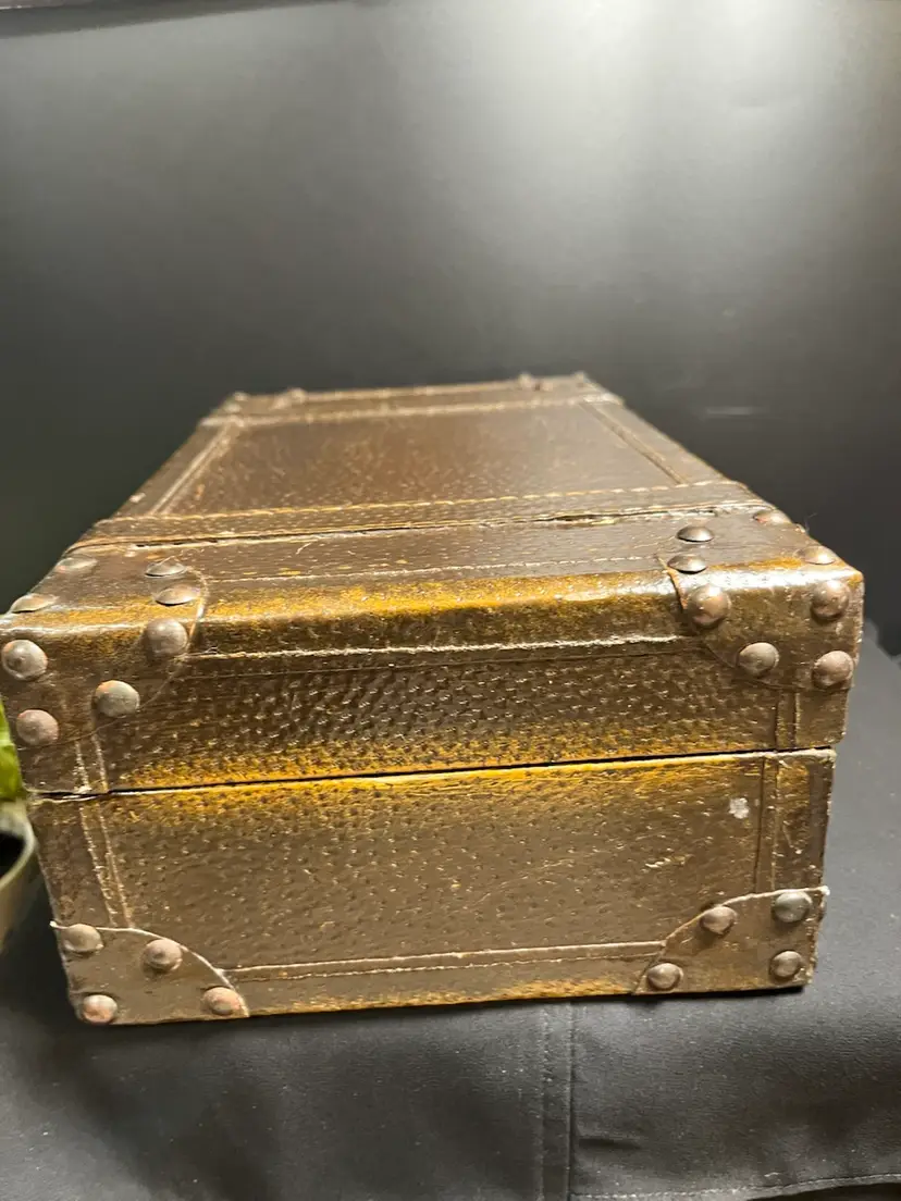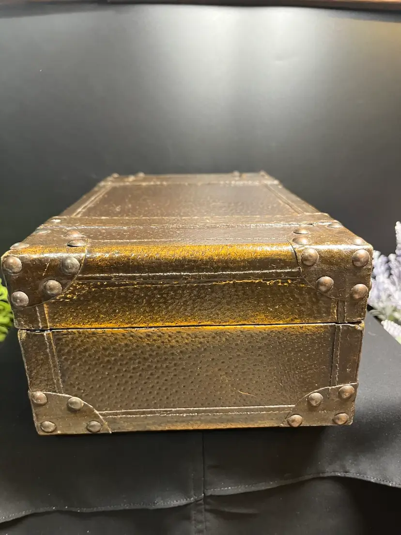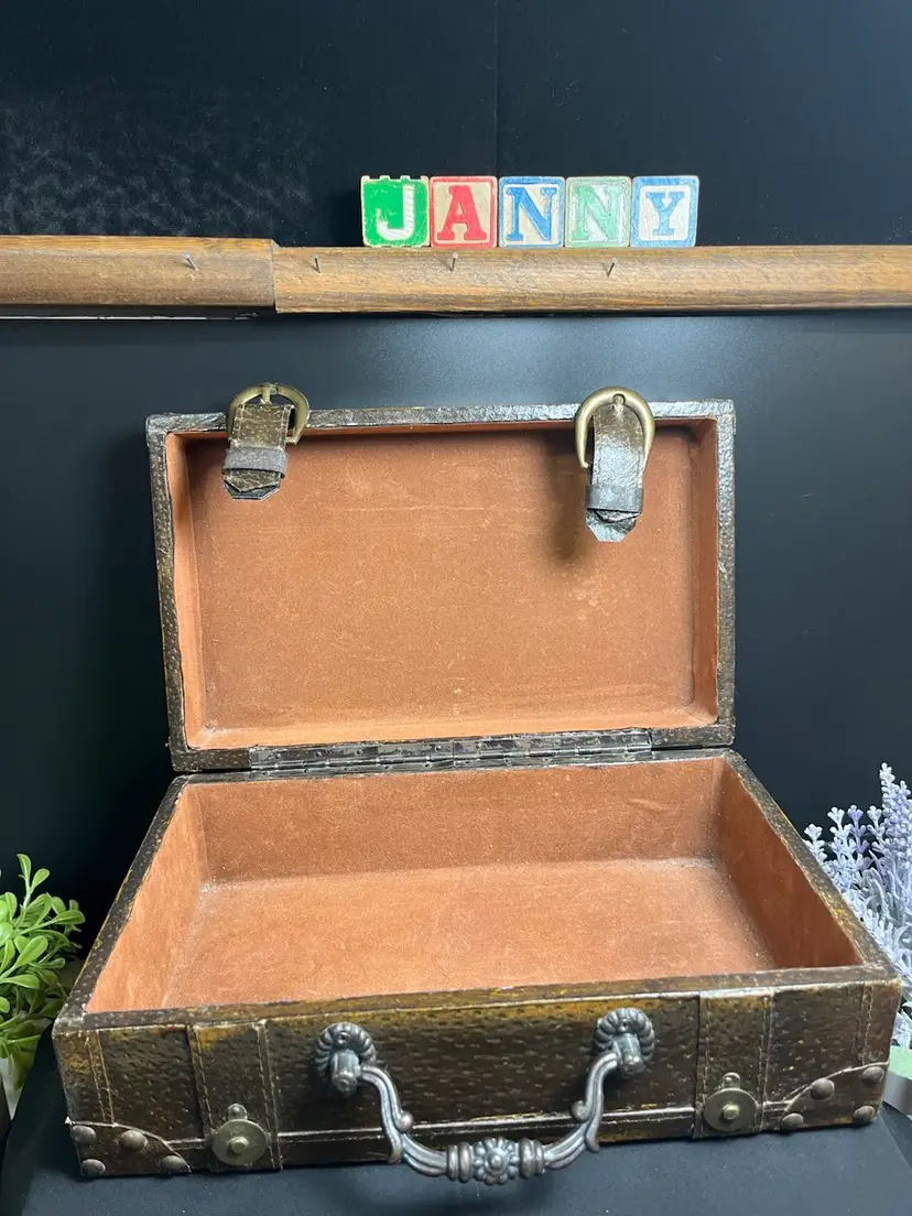 This is just simply primitively precious...Oh the ways you could decorate with this. It is in good vintage condition. Magnetic closures. Really no call outs. Velvet like material could use a vacuum. Measures approx 4.25"H, 11"W, 7" Deep. Approx 2 Lbs pre shipping wt. Has a partially torn off sticker, appears to have been manufactured in China.