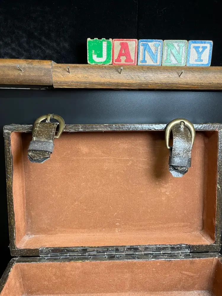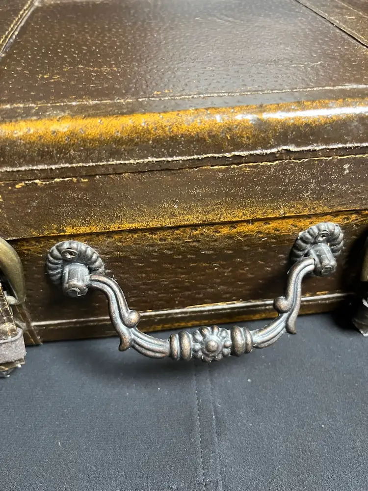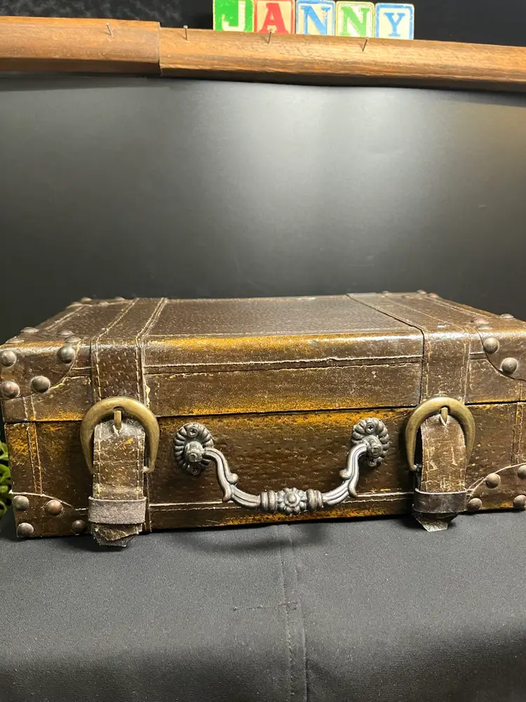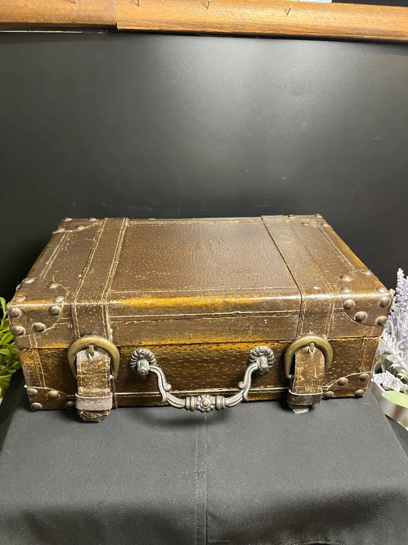 This is just simply primitively precious...Oh the ways you could decorate with this. It is in good vintage condition. Magnetic closures. Really no call outs. Velvet like material could use a vacuum. Measures approx 4.25"H, 11"W, 7" Deep. Approx 2 Lbs pre shipping wt. Has a partially torn off sticker, appears to have been manufactured in China.