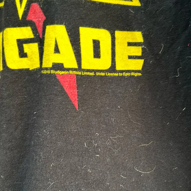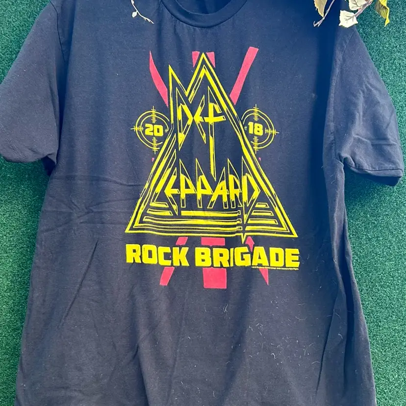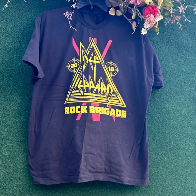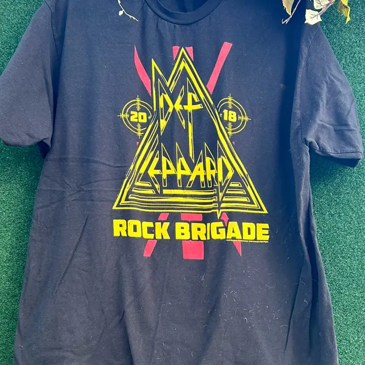 Def Leppard “Rock Brigade” Printed Black T-shirt, Yellow Lettering Official Merchandise, 2018 Tag missing Pit to pit: 24” Length: 29”