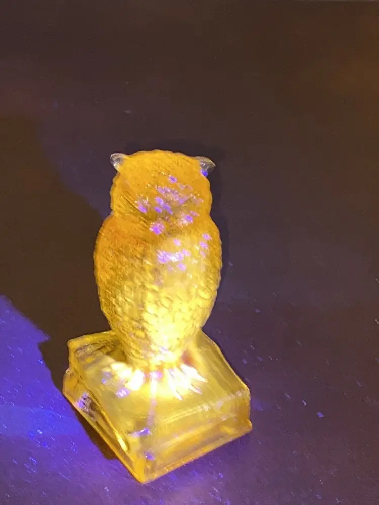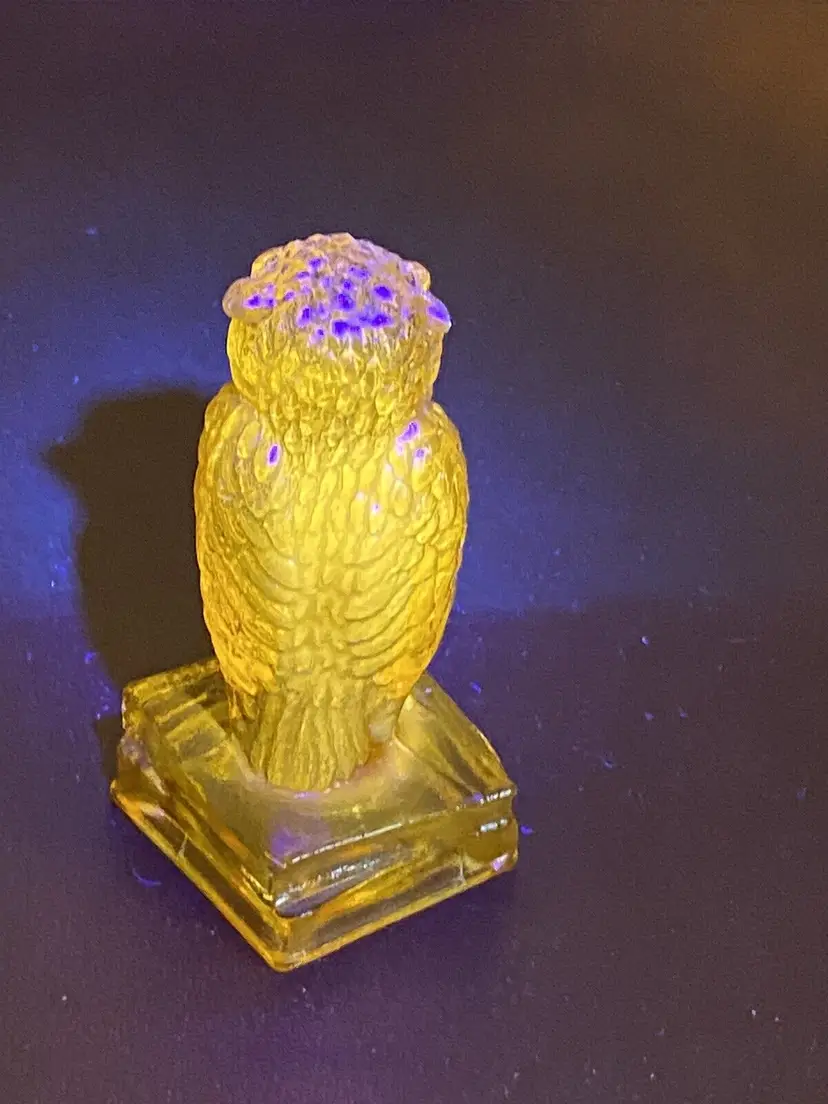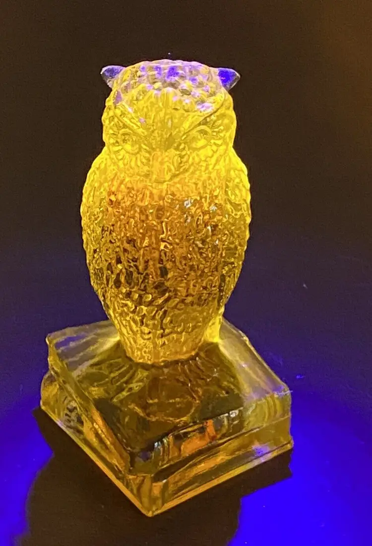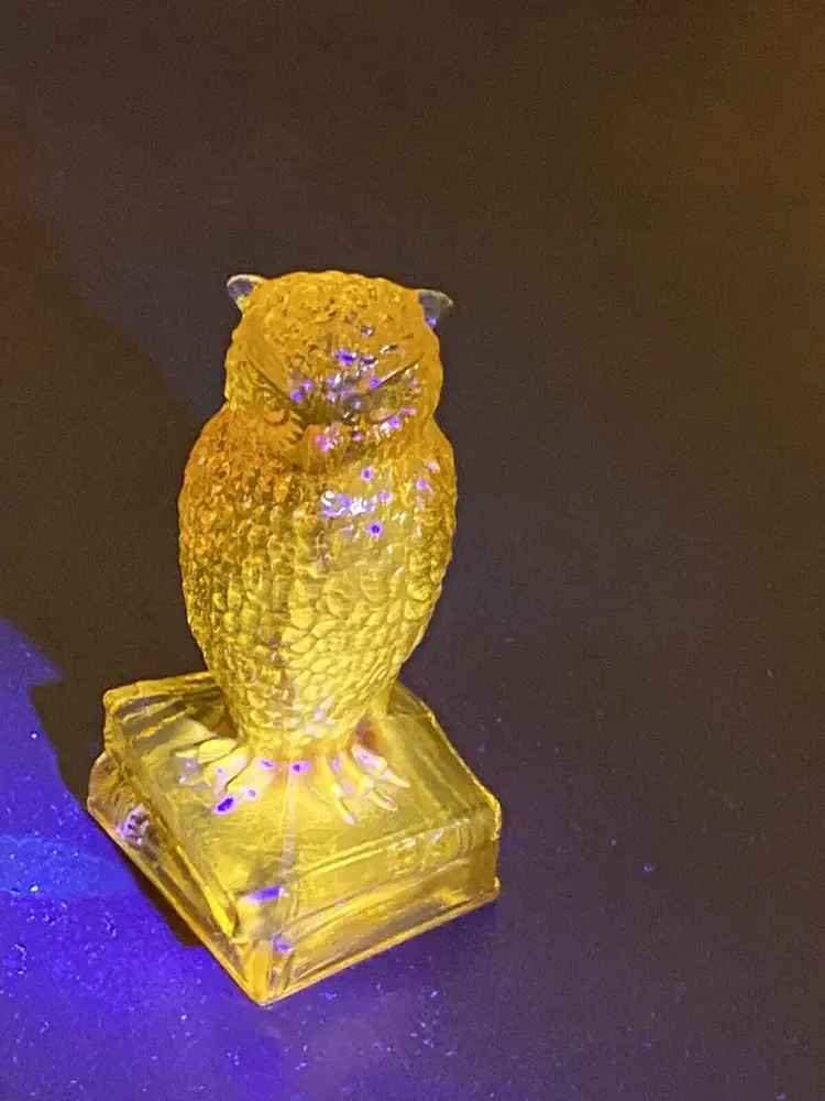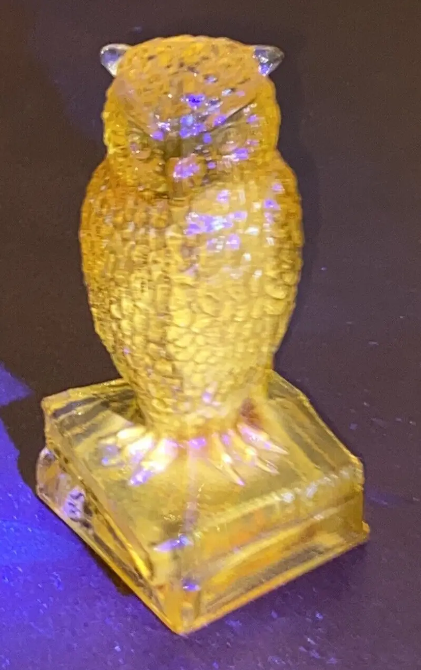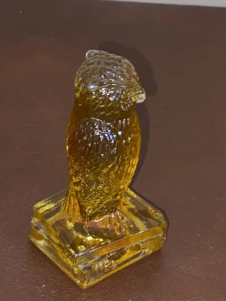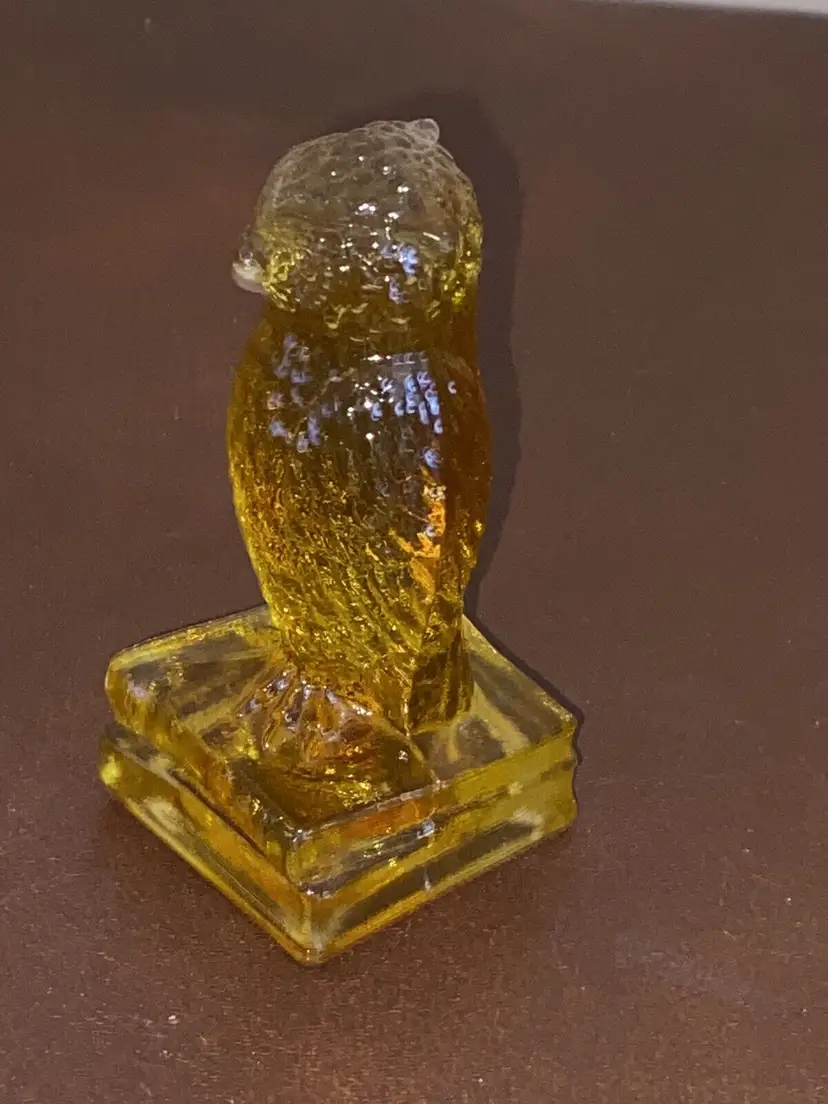 Origin: Ohio Color: Amber Material: Glass Item Length: 1.5 in. Additional Parts Required: No Subject: Owl Vintage: Yes Brand: Degenhart Type: Figurine Original/Licensed Reproduction: Original Item Height: 3.5” Model: Books Figurine Paperweight Style: Mid-Century Modern Theme: Books, Owls Production Style: Art Glass Time Period Manufactured: Unknown Backstamp: Impressed Country/Region of Manufacture: United States Item Width: 1.75 in. Item Weight: 4 oz.
