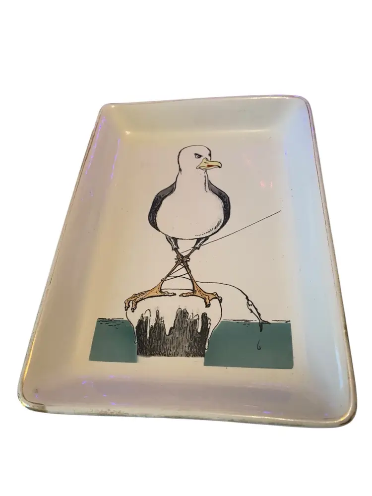 Delano Studios Angry Seagull w Fishing Line Trinket Tray Coin Dish Vintage 1962 7.5x5.25 hand colored
