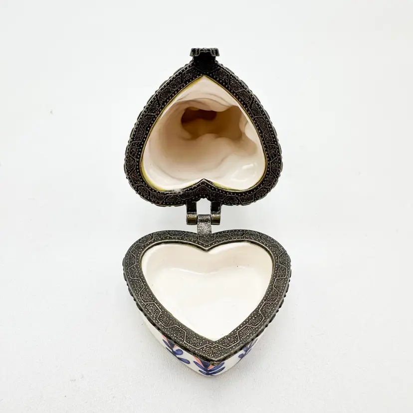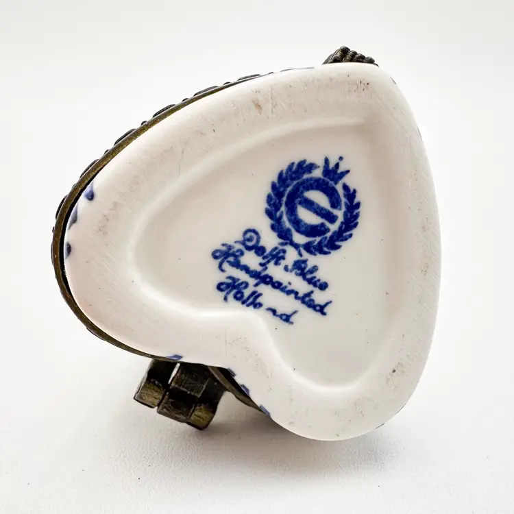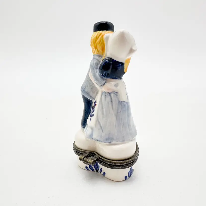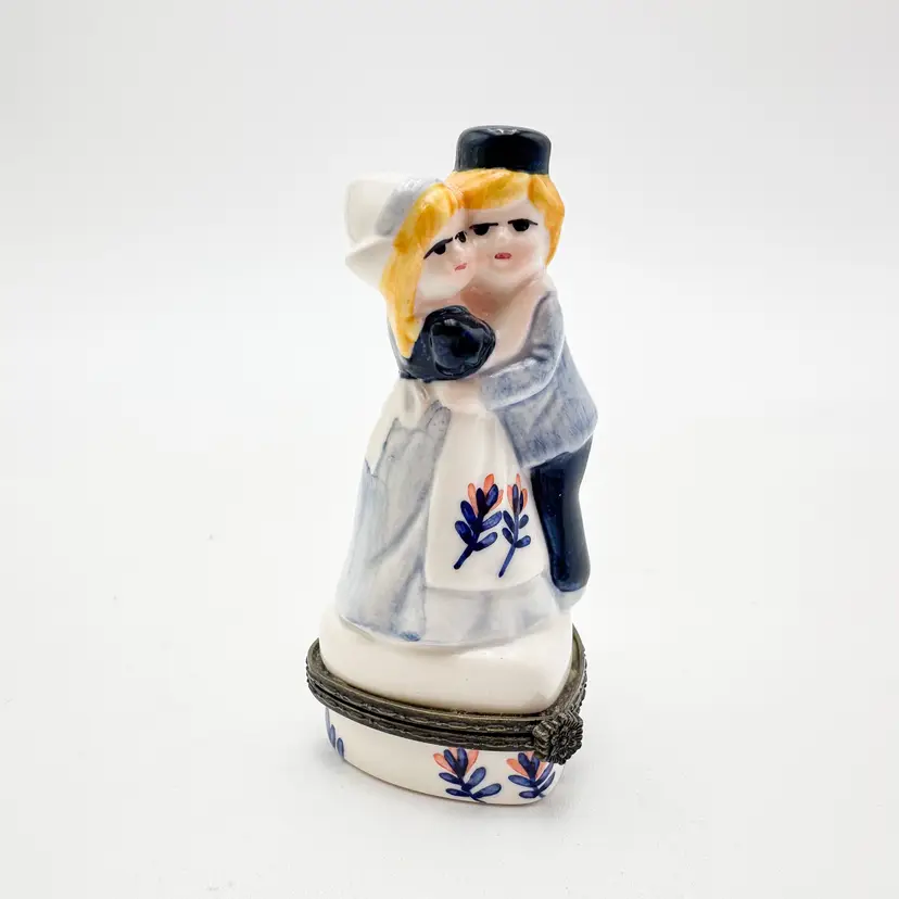 Delft Blue Boy Girl Heart Base Blue White Porcelain Trinket Box 1.5" x 3.5" B25