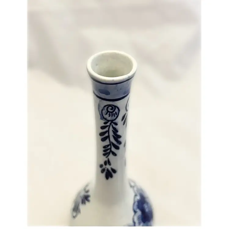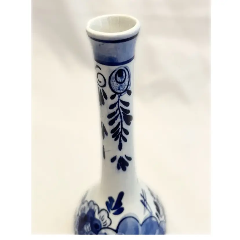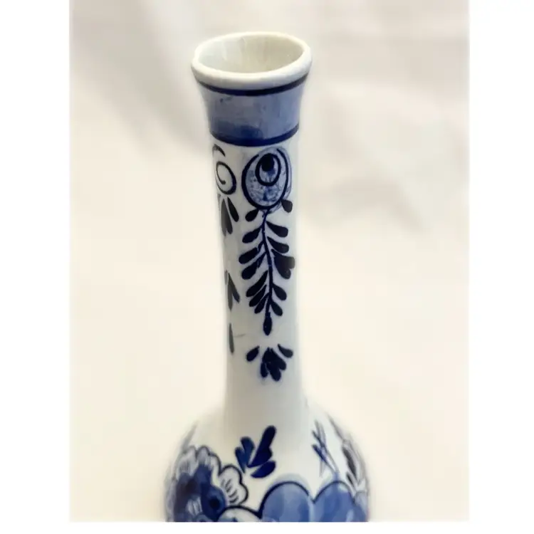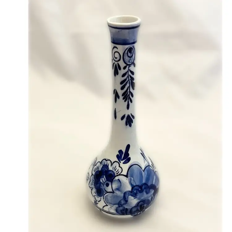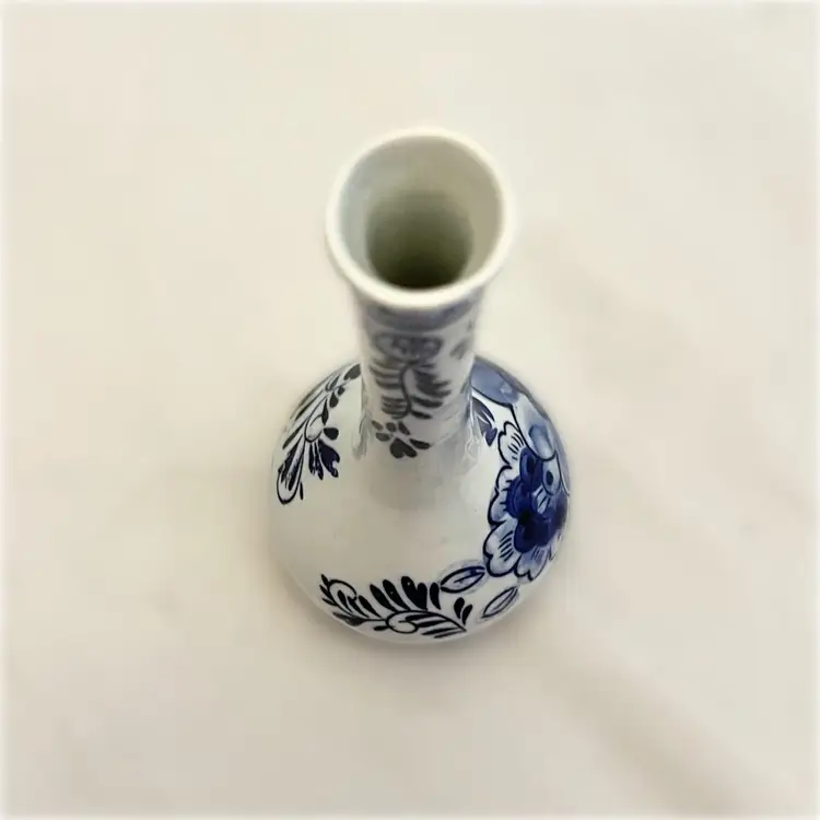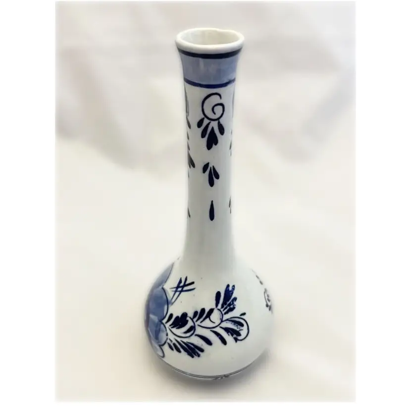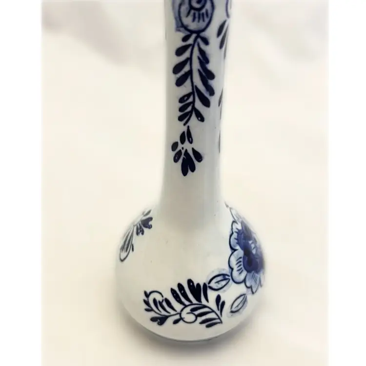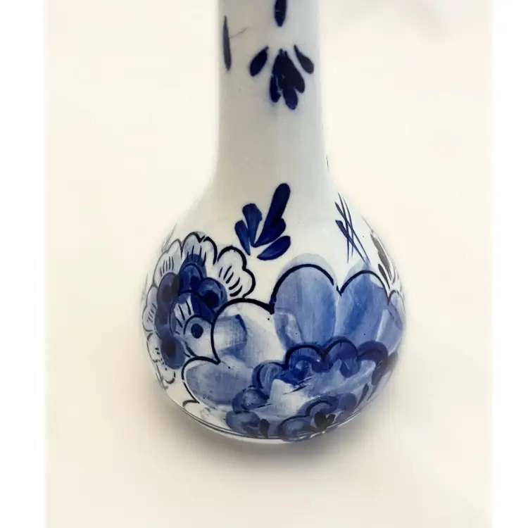 Beautiful vintage Delft Blue Bud Vase is in excellent used condition. It measures about 6.5 inches tall and is about 2.5 inches in diameter at its widest point.
