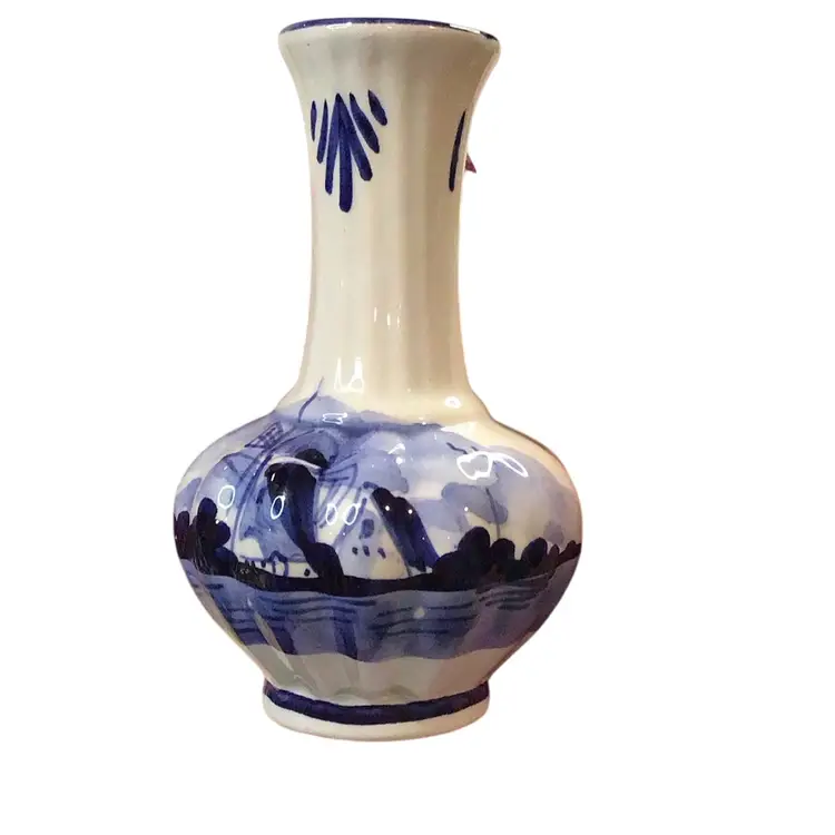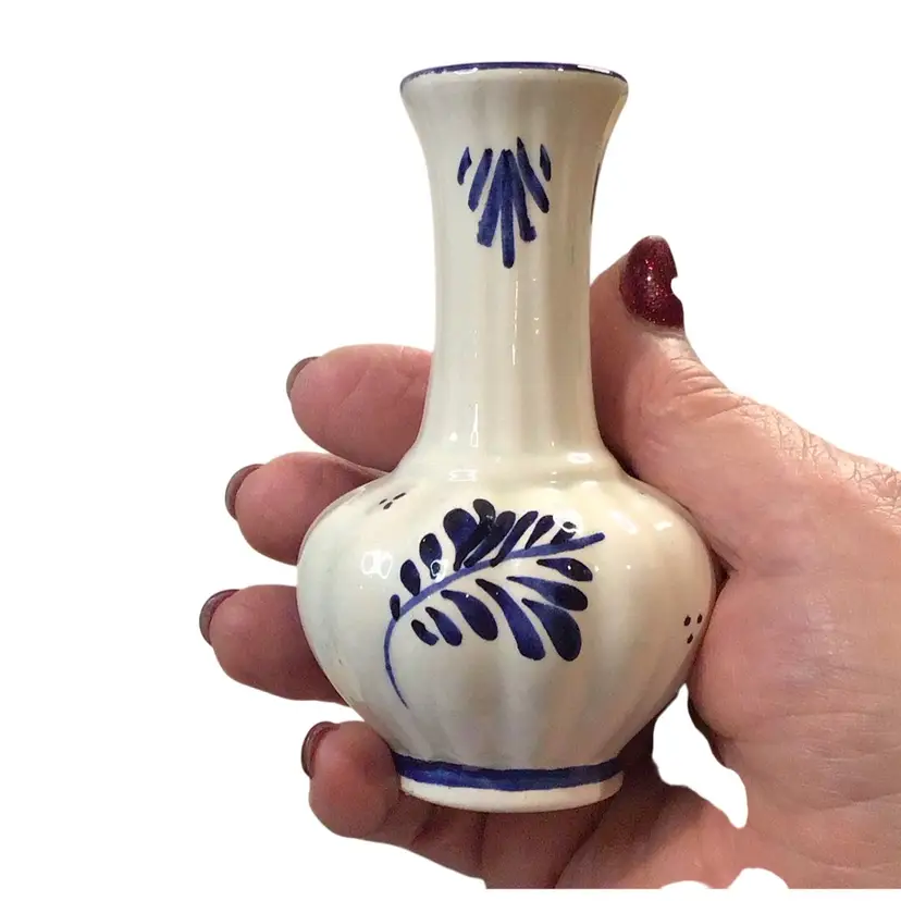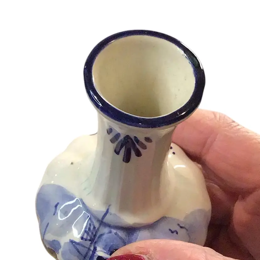 4.25 inches tall. He picks dutch windmill scene. Signed Delft S Holland, HANDGESCHILDERD TF, porcelain.