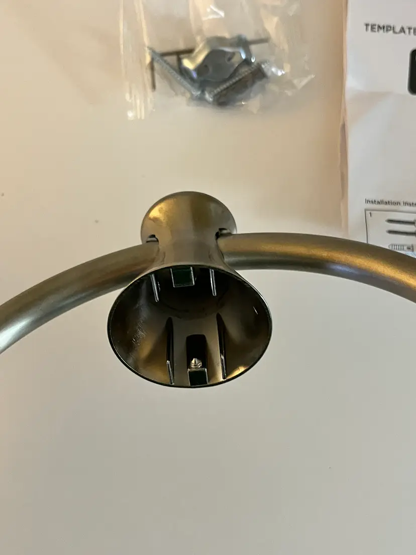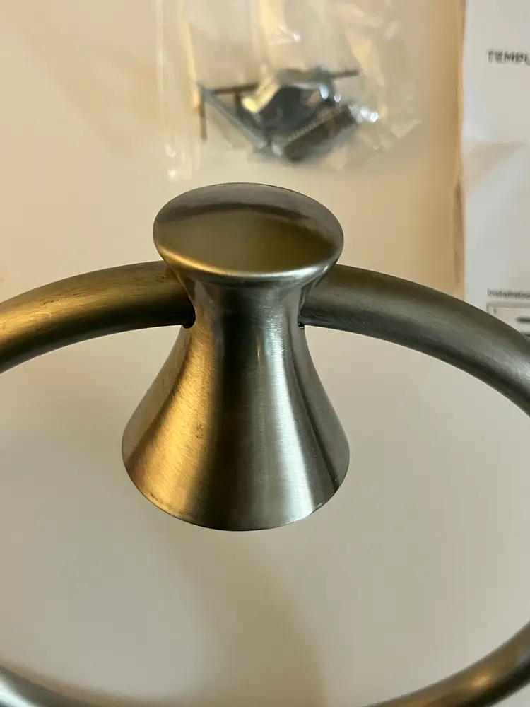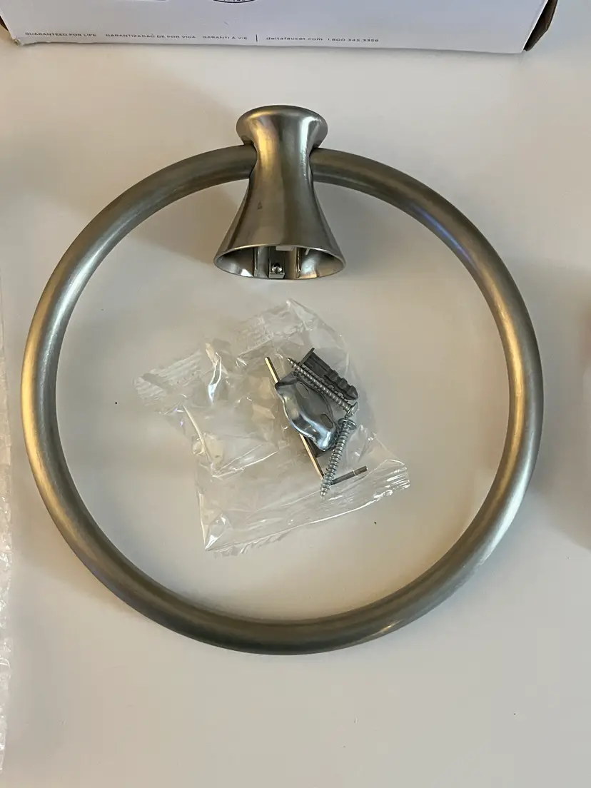 Please note: the box has some cosmetic wear from storage, but the towel ring itself is pristine.