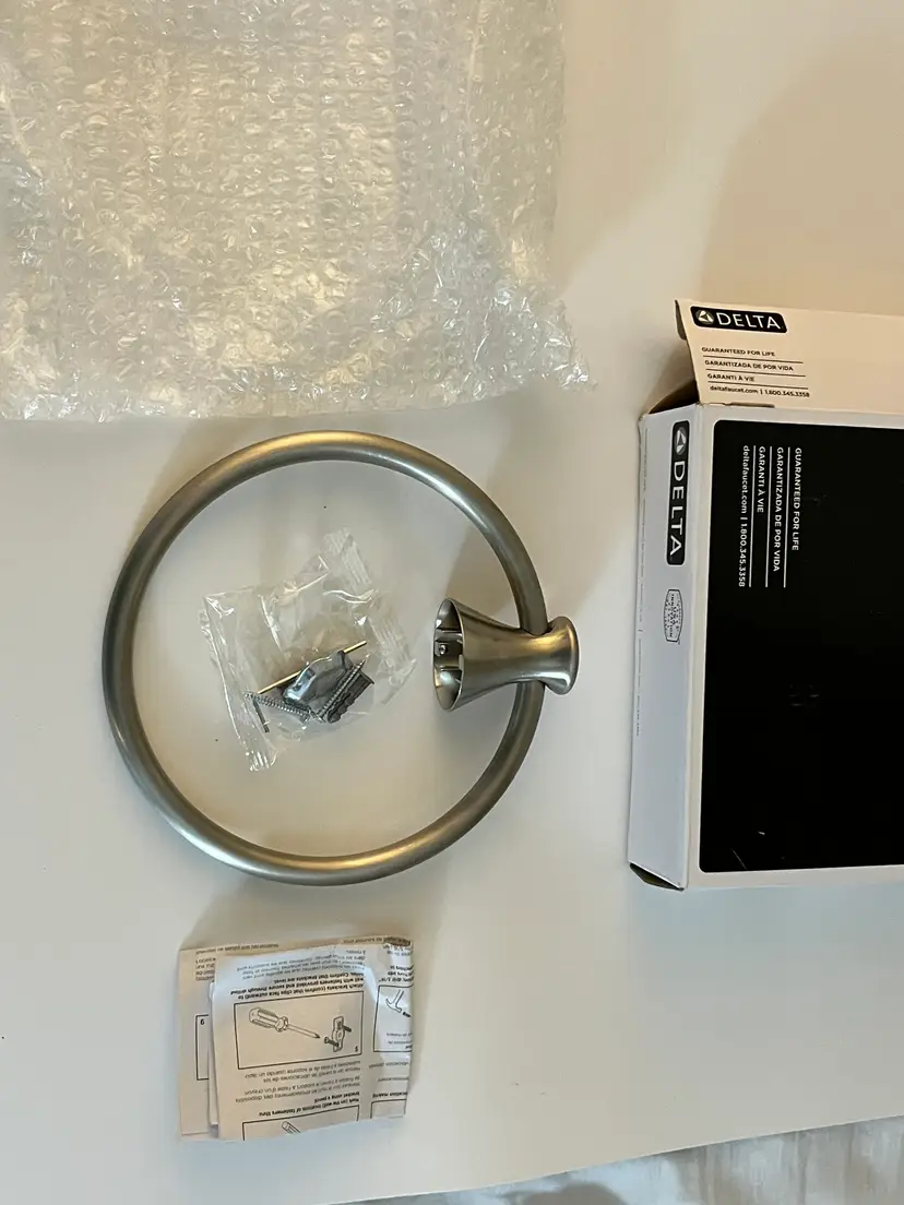This Delta Lahara Collection towel ring brings a clean, sculpted profile to any bathroom upgrade. The brushed nickel (Brilliance Stainless) finish adds a soft, satin glow—easy on the eyes and friendly to most fixtures.