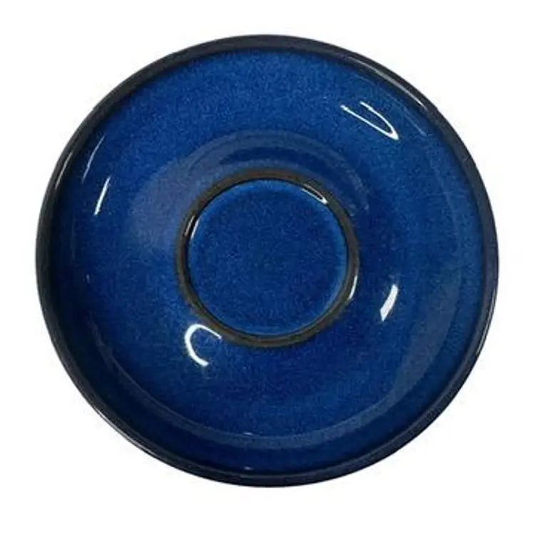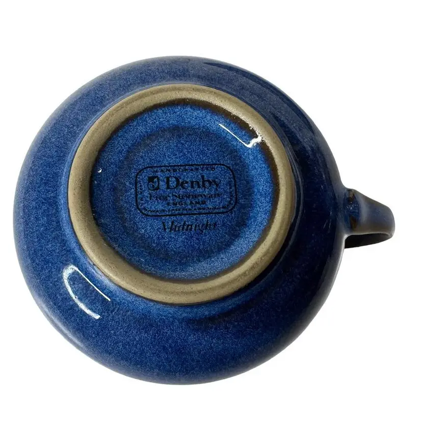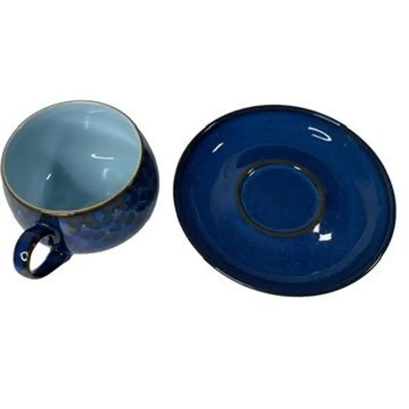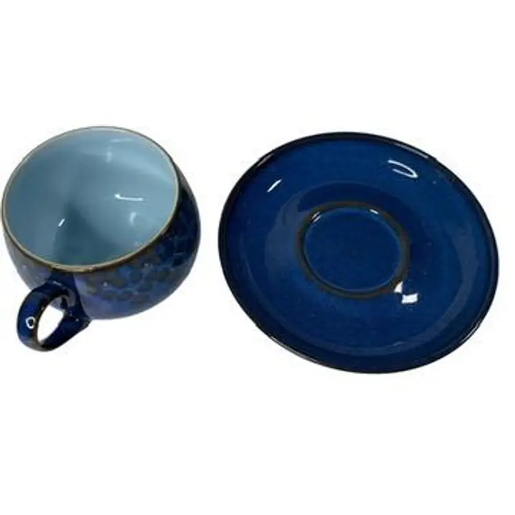 Denby Midnight England Cup and Saucer Blue with Brown and Red Details