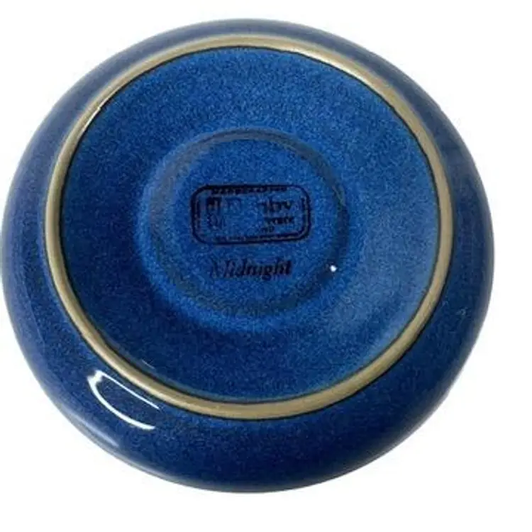 Blue Midnight with Brown and Red Details Height: 2 5/8" Width: 3" Oven Safe, Microwave Safe & Dishwasher Safe