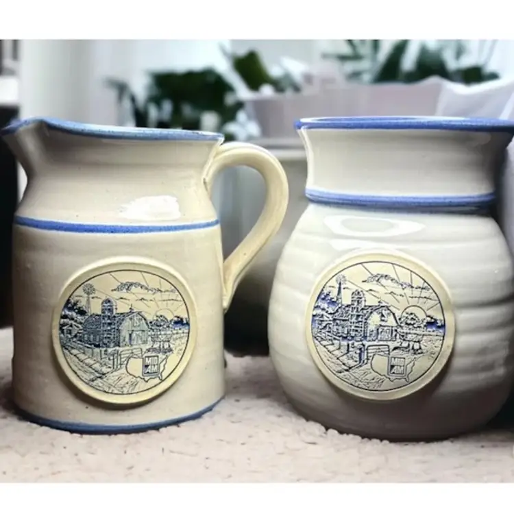 Mid America Dairymen Special Edition Sunrise Farm Scene Pitcher and Crock set.