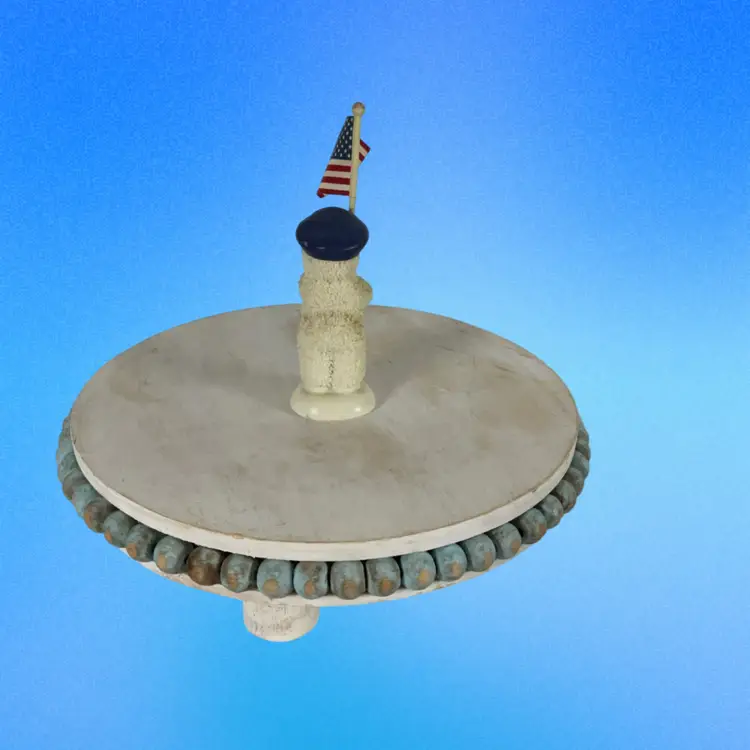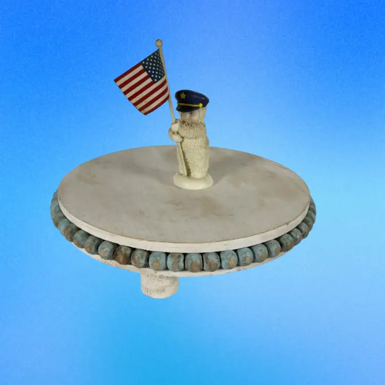 He needs a good cleaning but otherwise in good condition. Approximately 4” tall including flag. Figurine is about 3”