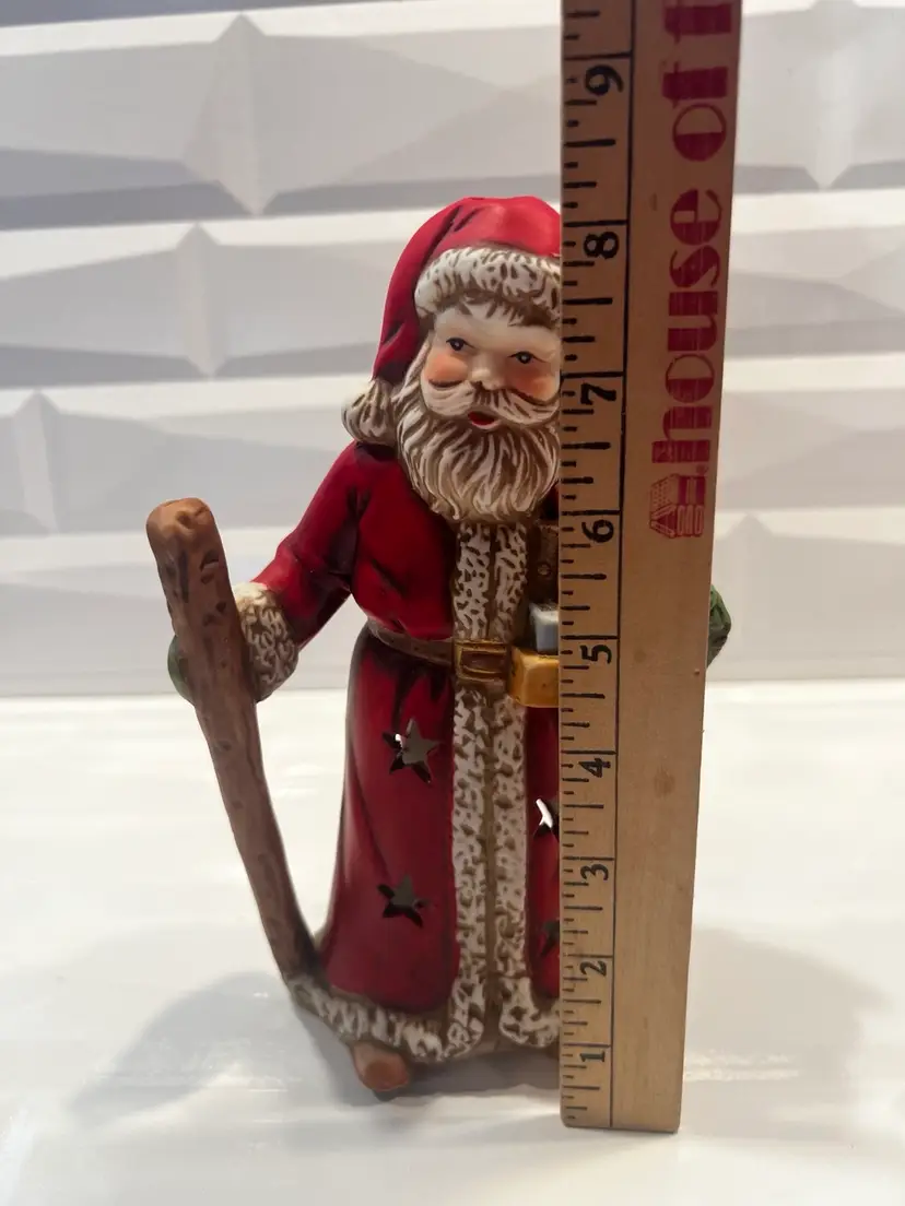 This is a Santa Claus candle holder (tea light). The flicker of the candle will shine through the star cut outs . Good Condition