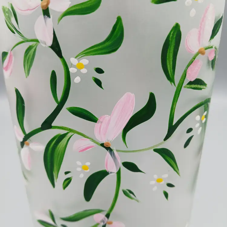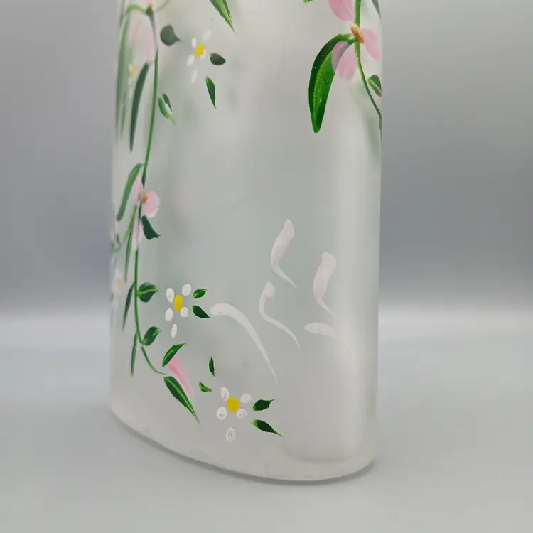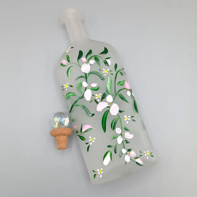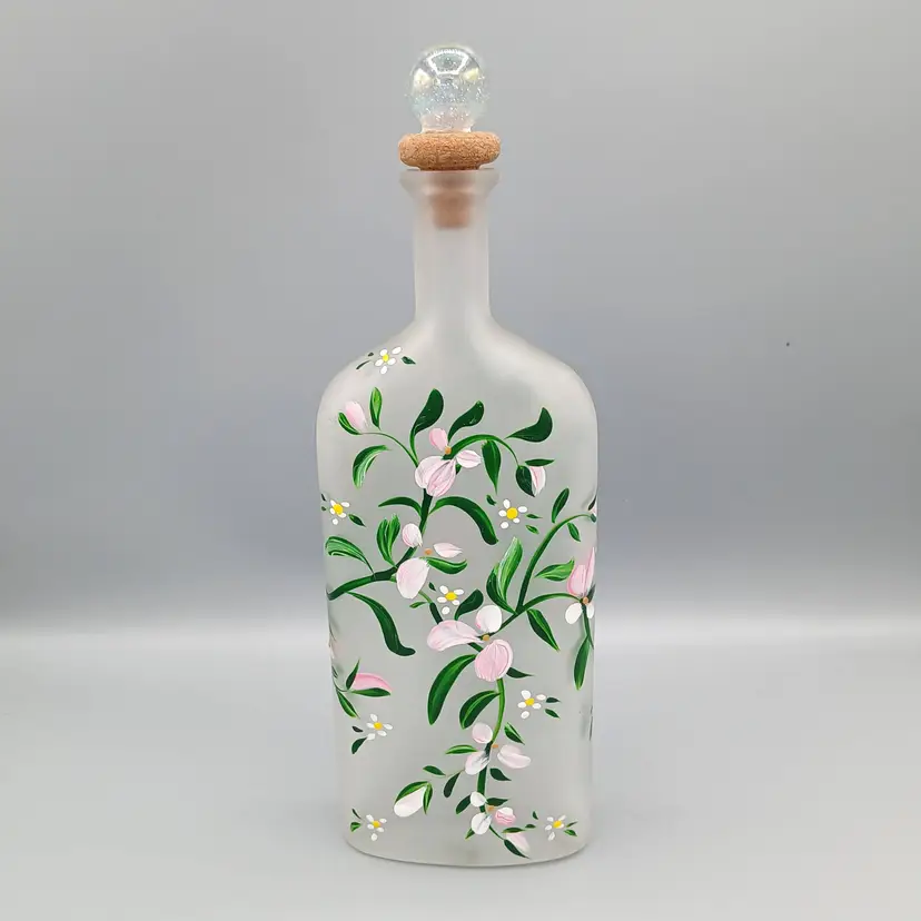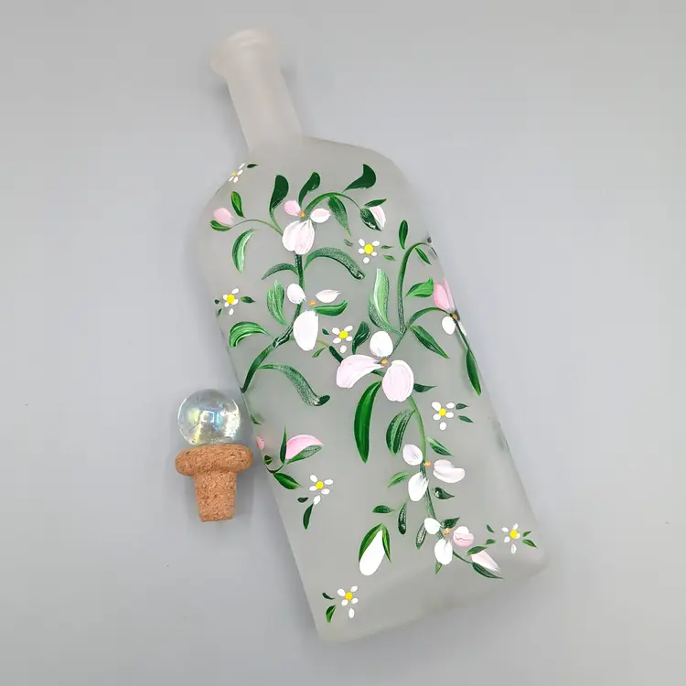 I have several hand-painted items like this that I'll be featuring in my next live auction. Please give a follow to be notified. This was the only Dept 56 bottle that I found in the collection. The delicate floral painting is well suited to this interesting satin finish bottle. And there is no damage. The bottle is 9" high without the stopper, a bit over 10" with. It's about 3" wide and under 2" deep. Thanks for looking!