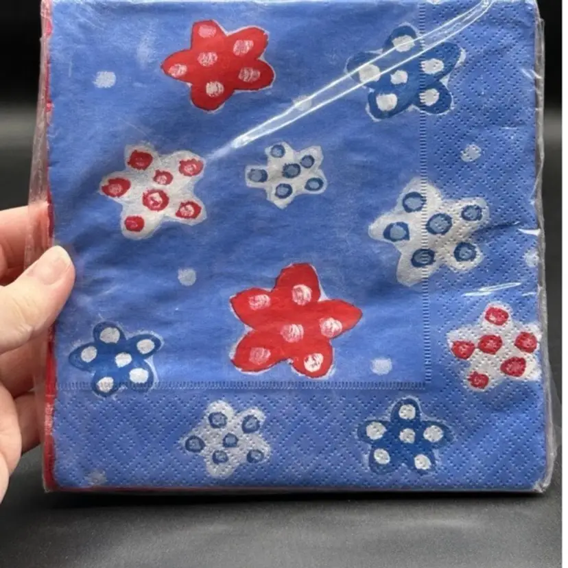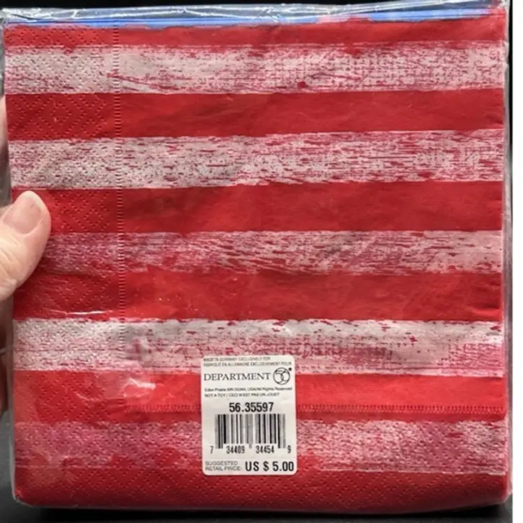 Add some patriotic flair to your collection with these Dept 56 Red, White, and Blue paper napkins. Made in Germany, these napkins are perfect for collectors of all kinds. With a set of 20, you can use them for display or even for practical use. These napkins are a great addition to any collection and are sure to impress guests.