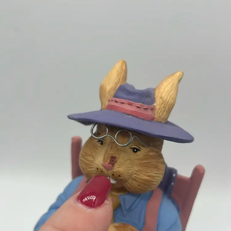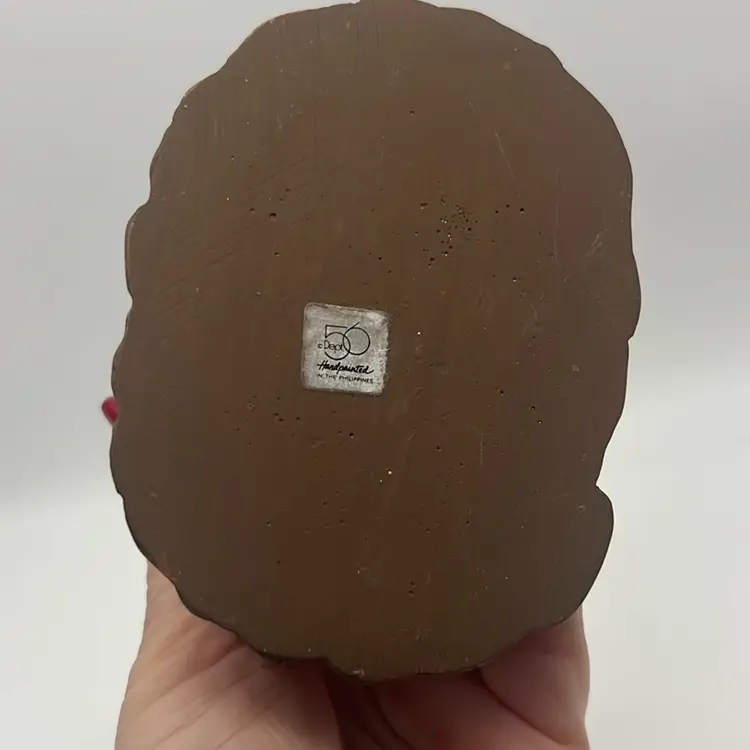 Smudge on nose minor chip. Maybe could be painted or repaired better. No other chips or cracks. Priced low due to nose issue. Approx: 6.5” h x 3” x 4”