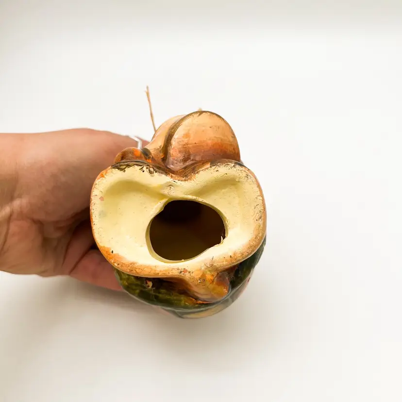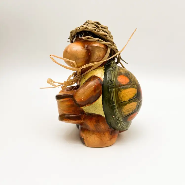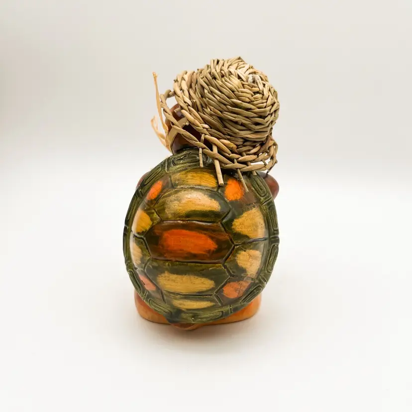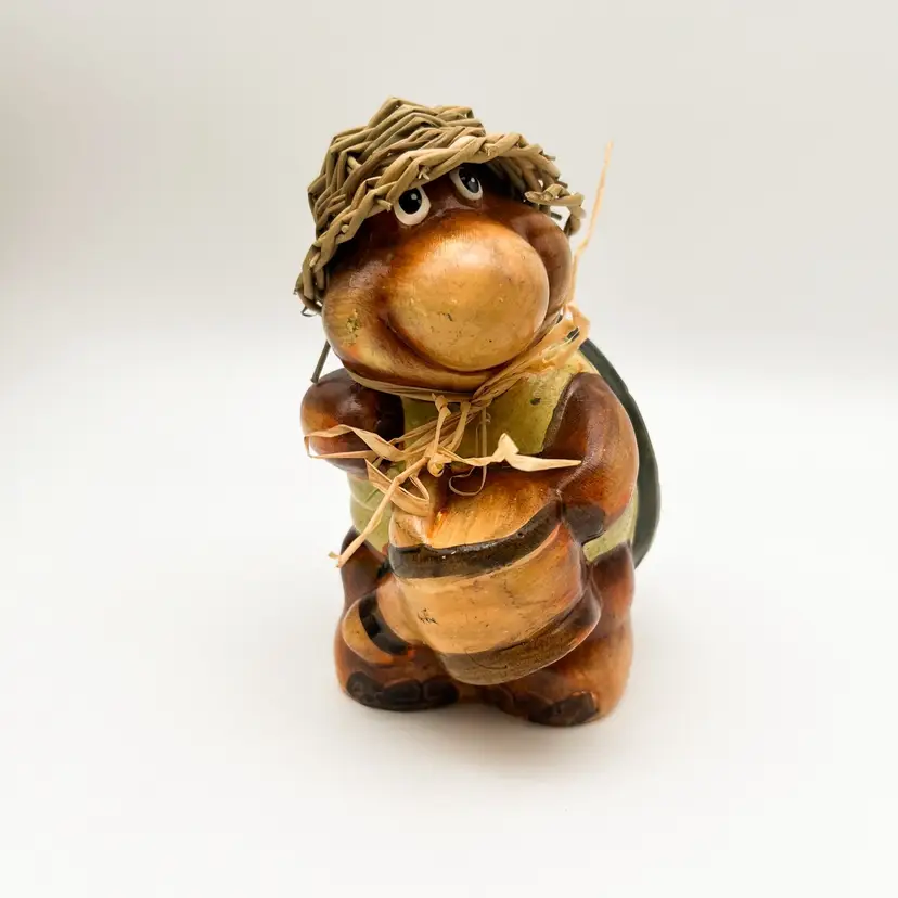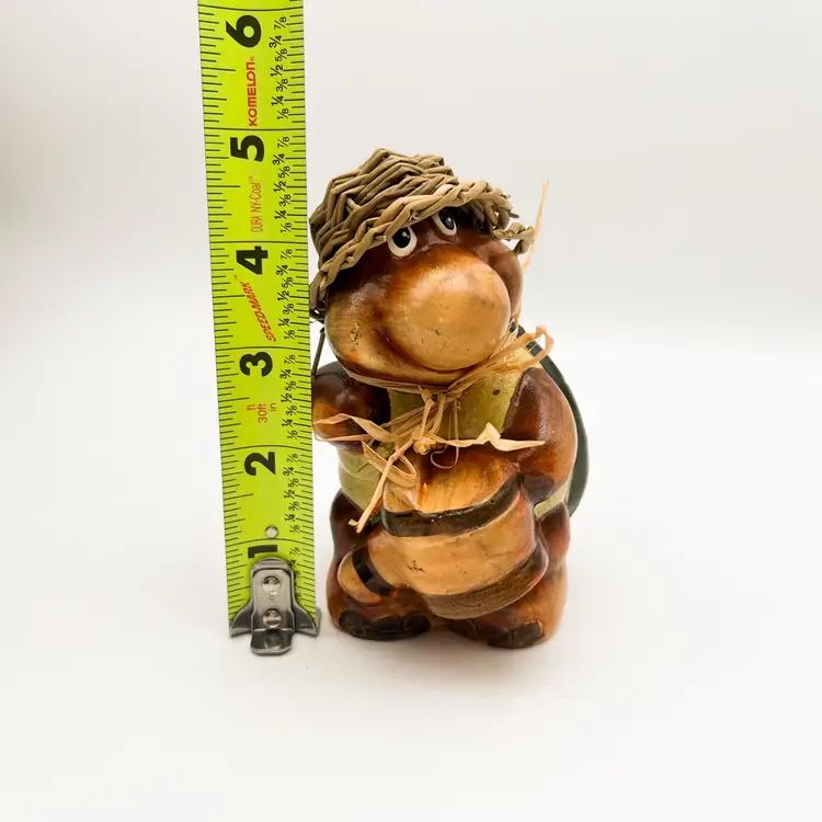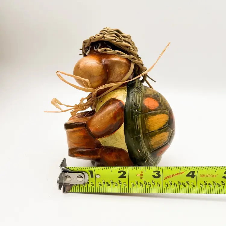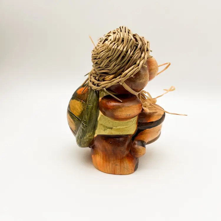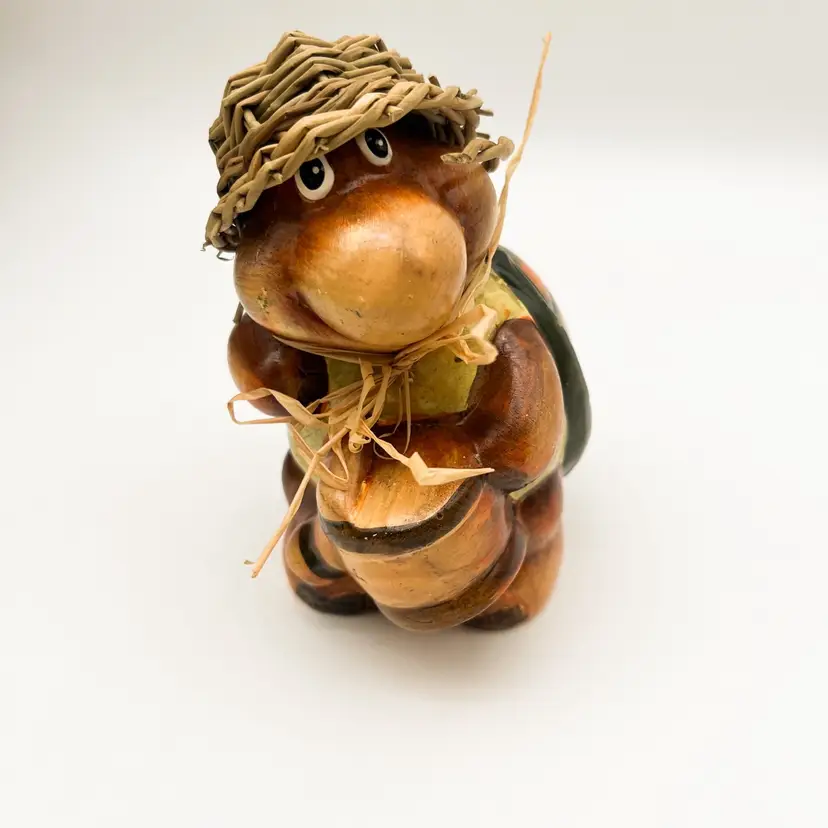 Derpy Ceramic Turtle Figurine Multicolor Handpainted Straw Hat has some unraveling, there are no chips or cracks that I could find