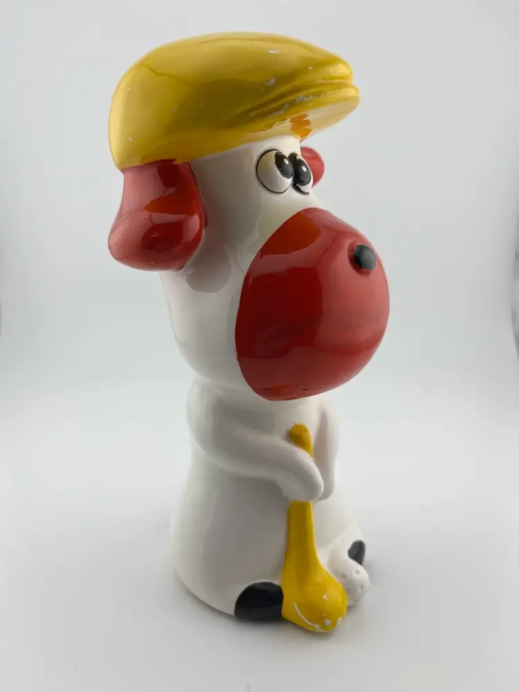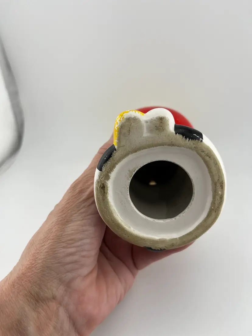Red Ears!! Colorful Duffer!! Approx 7" H, Approx 8.5 oz. Some paint wear, no stopper.