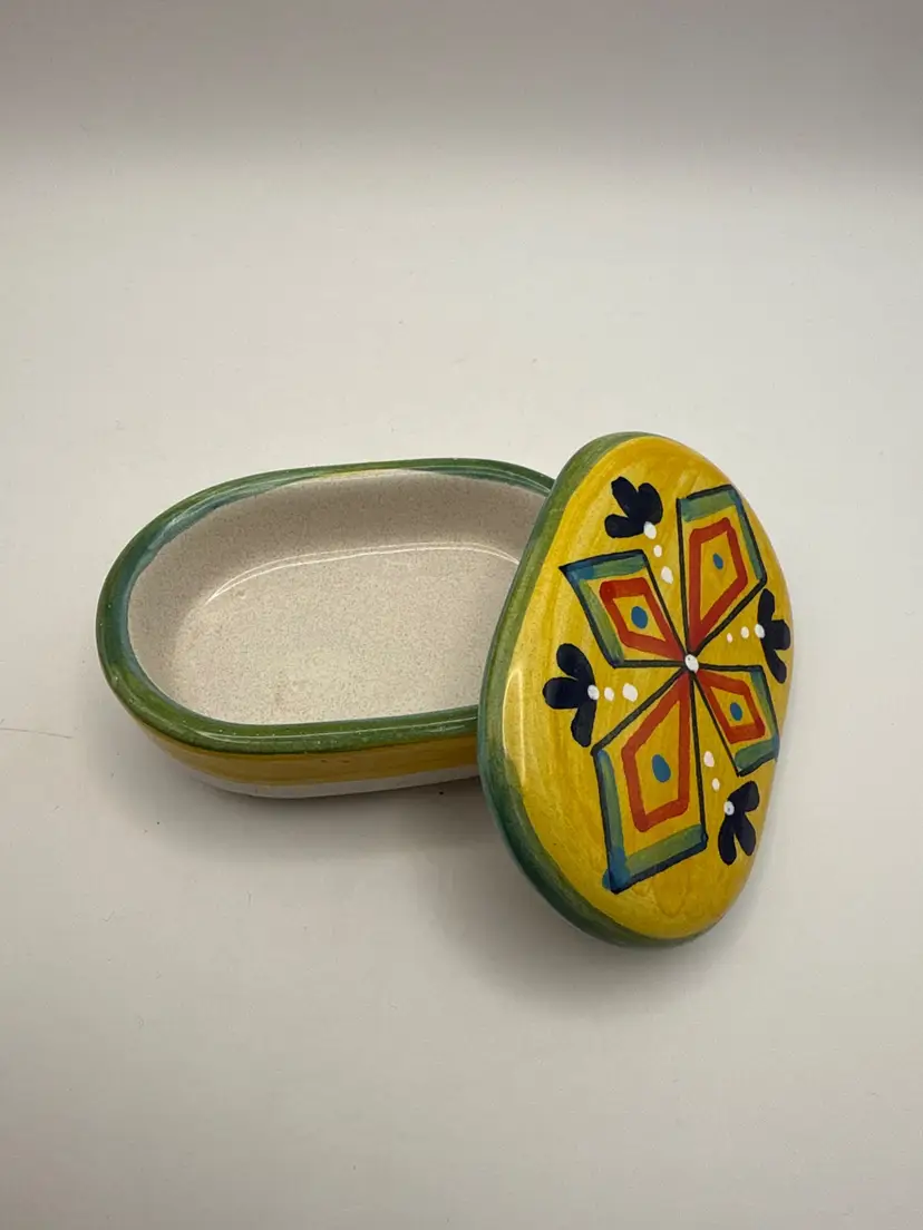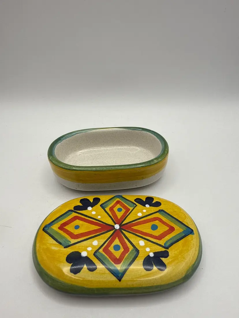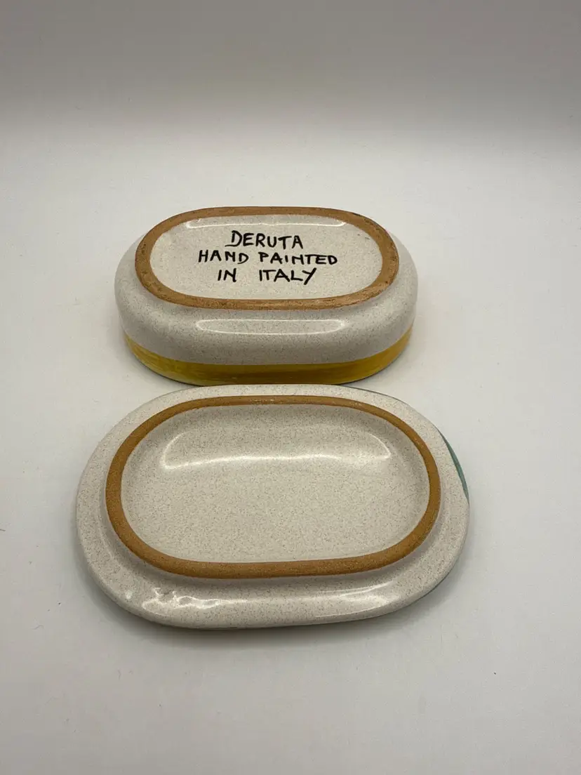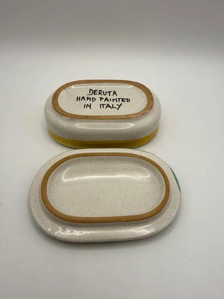 Pre-owned - good condition. No chips, cracks or repairs. Features a multicolor design and Italian theme. Made in Italy with a pottery production technique, this original piece is branded as Deruta and bears a painted backstamp.
