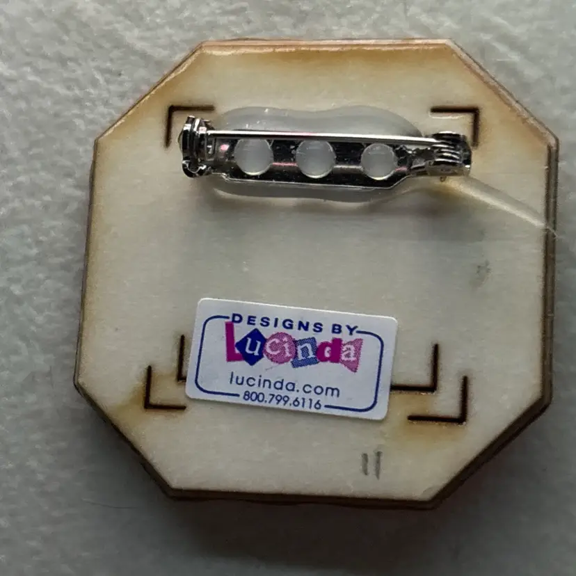 Condition: Pin is in great pre-owned vintage condition. Includes ‘Designs by Lucinda’ sticker on the back.